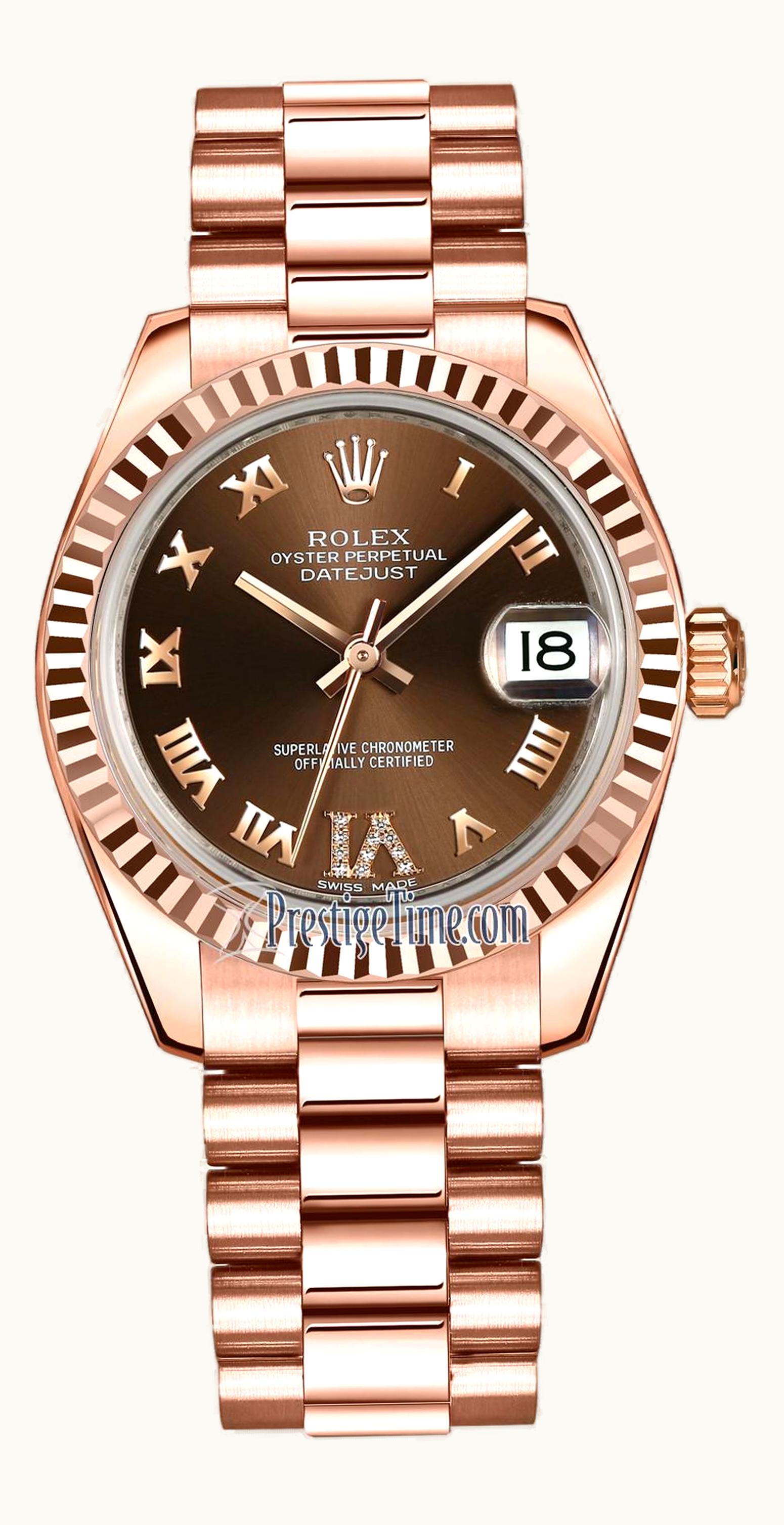 Rolex Datejust 31 Everose Fluted / President / Chocolate Roman 178275f-0031 | GLINT