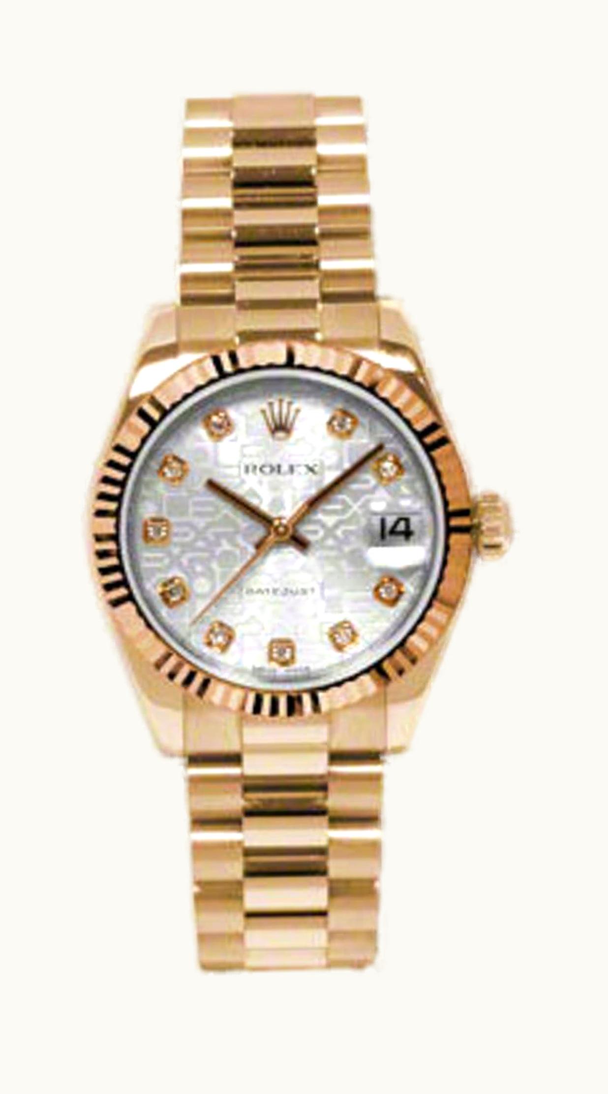Rolex Datejust 31 Everose Fluted / President / Silver Diamond 178275f-0005 | GLINT