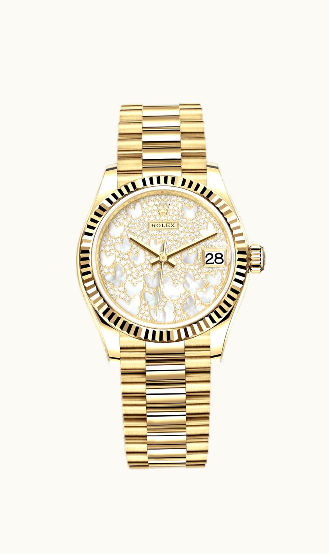 Rolex Datejust 31 Yellow Gold / Fluted / Butterfly / President 278278-0022 | GLINT