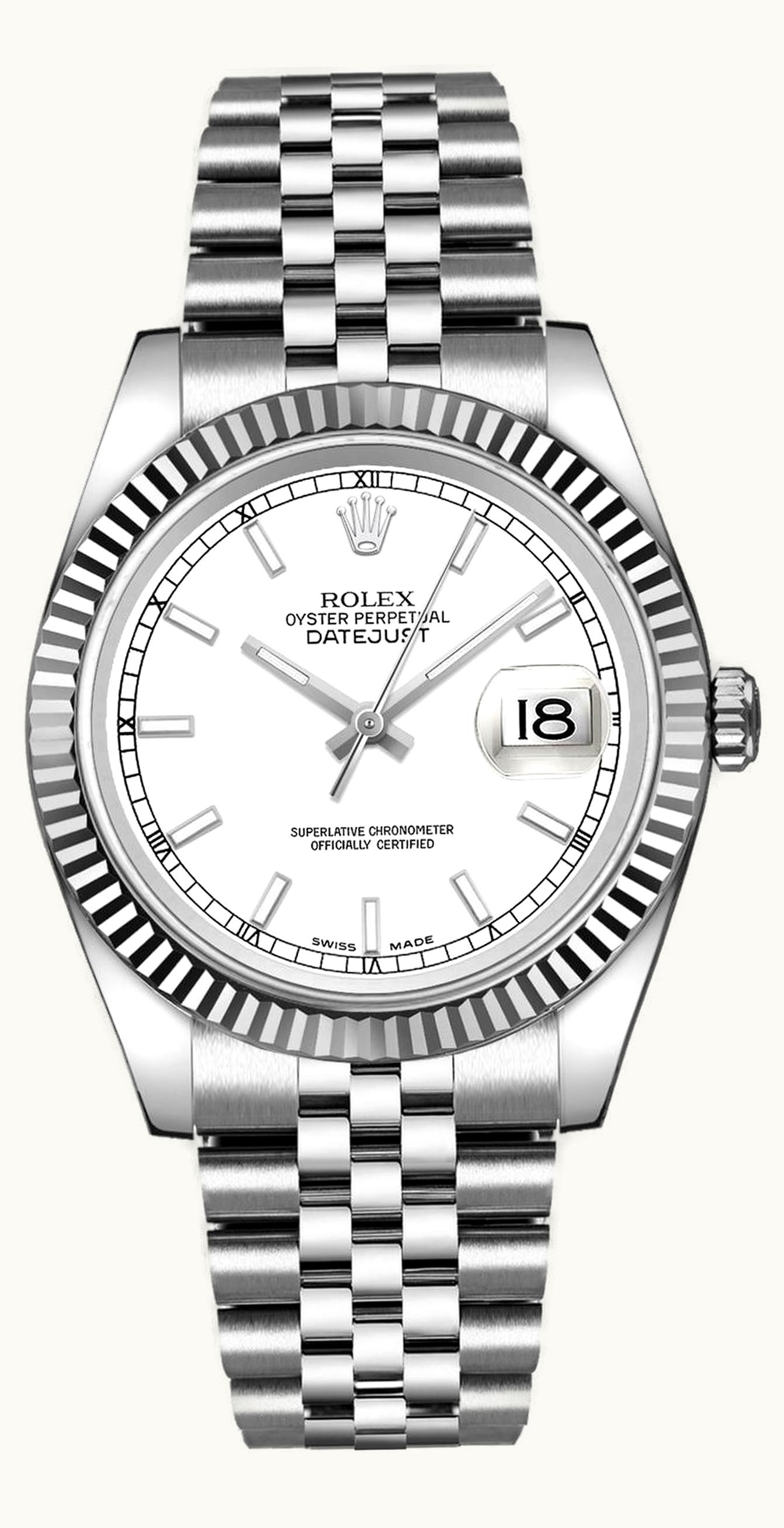 Rolex Datejust 36 Stainless Steel Fluted / Jubilee / White 116234-0088 | GLINT