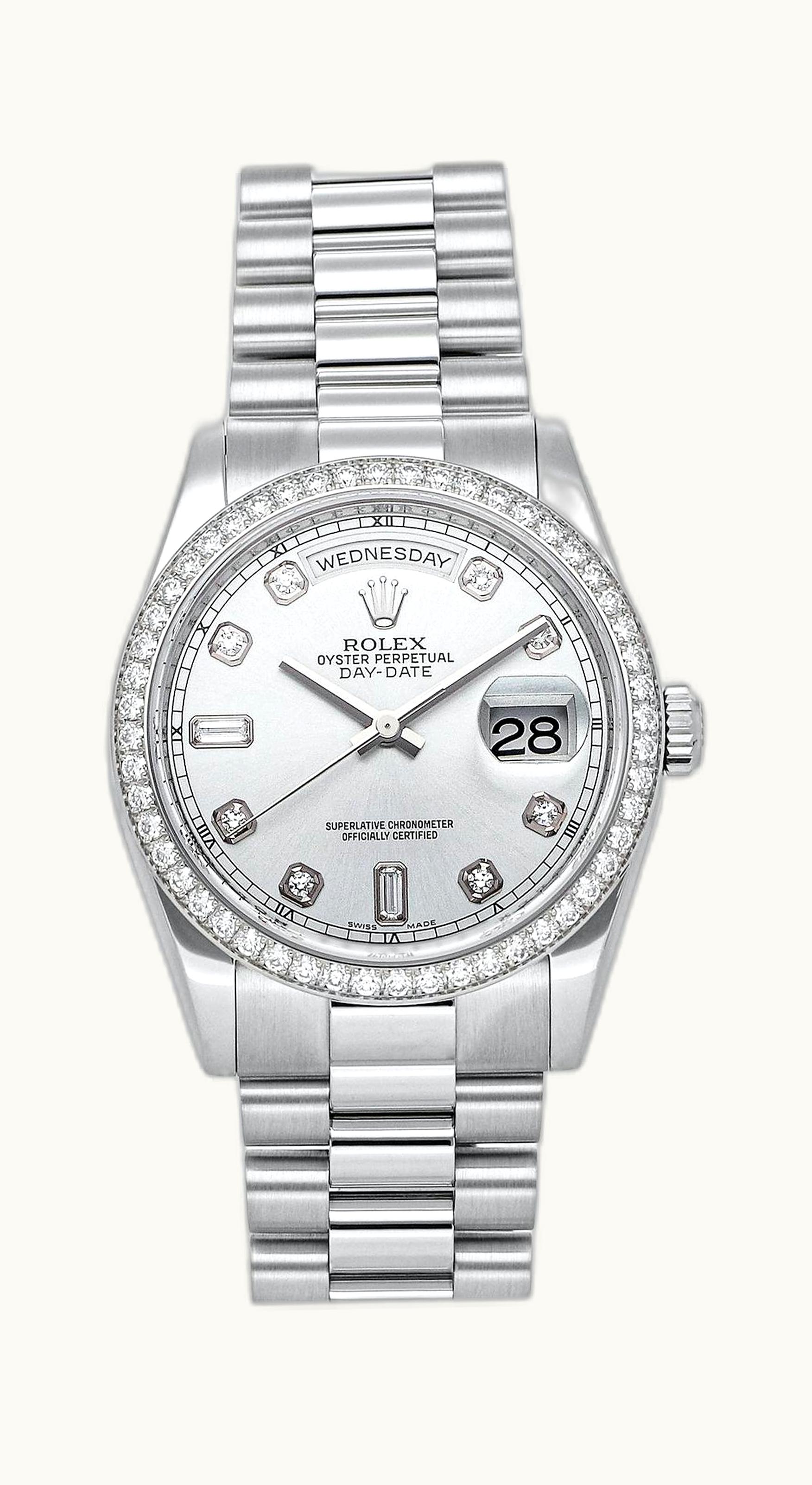 Rolex Day-Date 36 Platinum Diamonds / President / Silver Diamonds 118346-0024 | GLINT