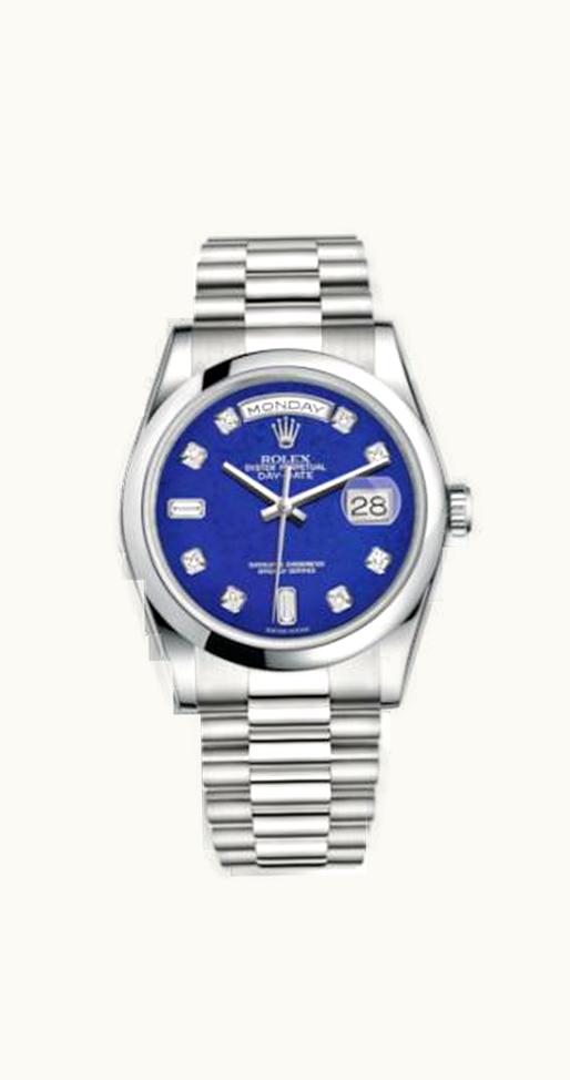 Rolex Day-Date 36 Platinum Domed / President / Lapis 118206-0118 | GLINT