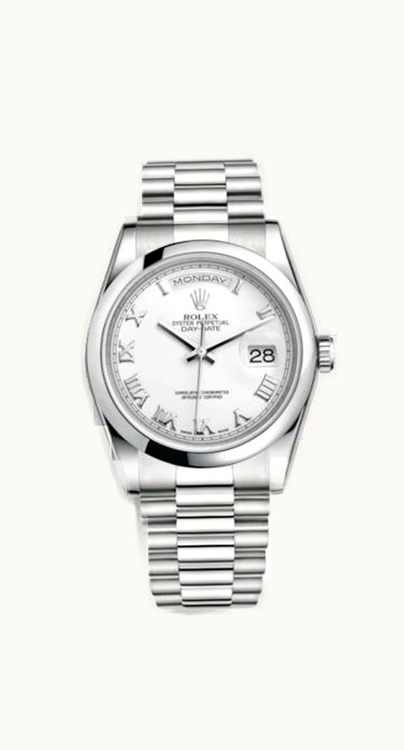 Rolex Day-Date 36 Platinum Domed / President / White Roman 118206-0041 | GLINT