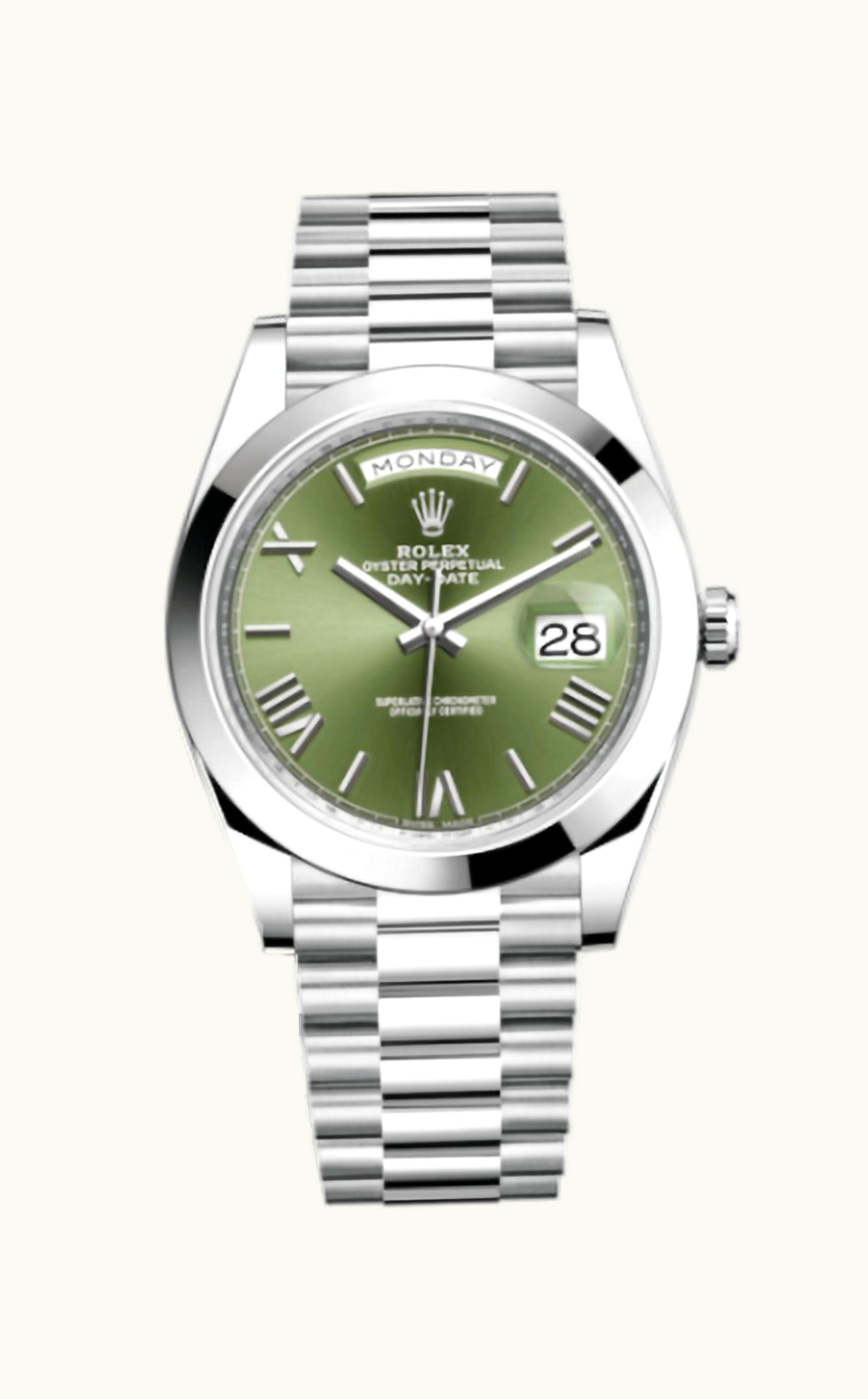 Rolex Day-Date 40 Platinum / Green - Roman 228206-0027 | GLINT