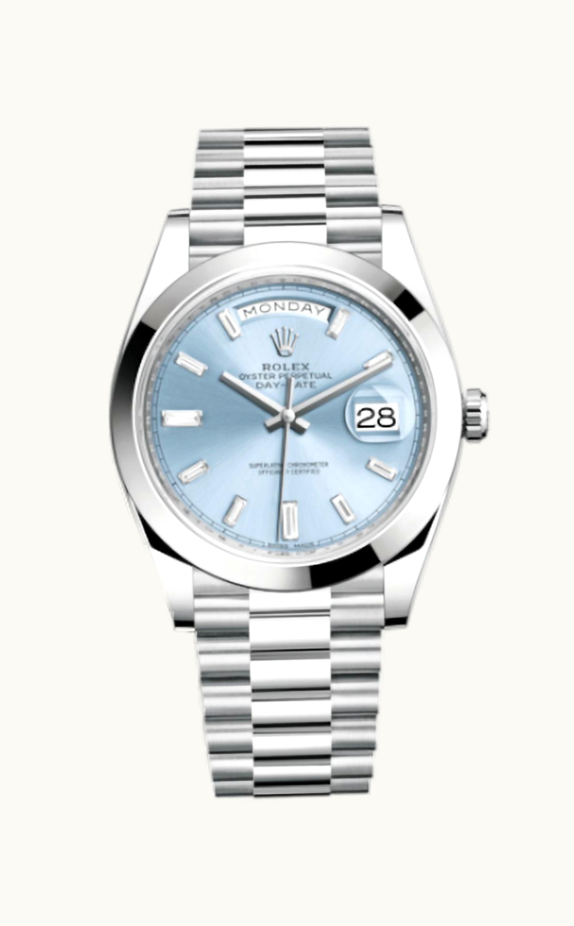 Rolex Day-Date 40 Platinum / Ice Blue Diagonal Diamond 228206-0002 | GLINT