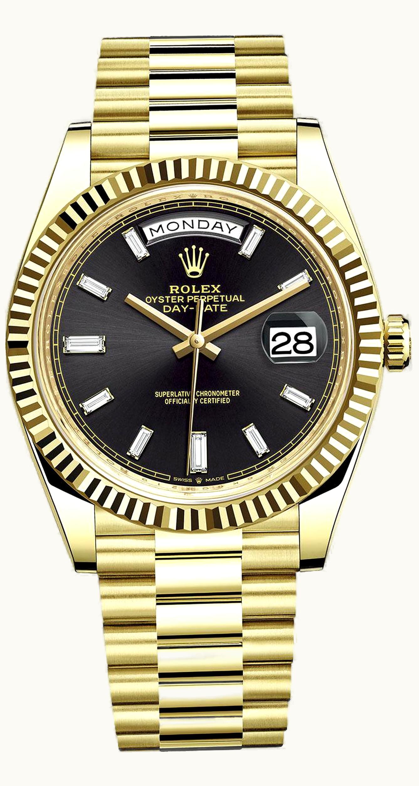 Rolex Day-Date 40 Yellow Gold - Baguette / Black 228398tbr-0004 | GLINT
