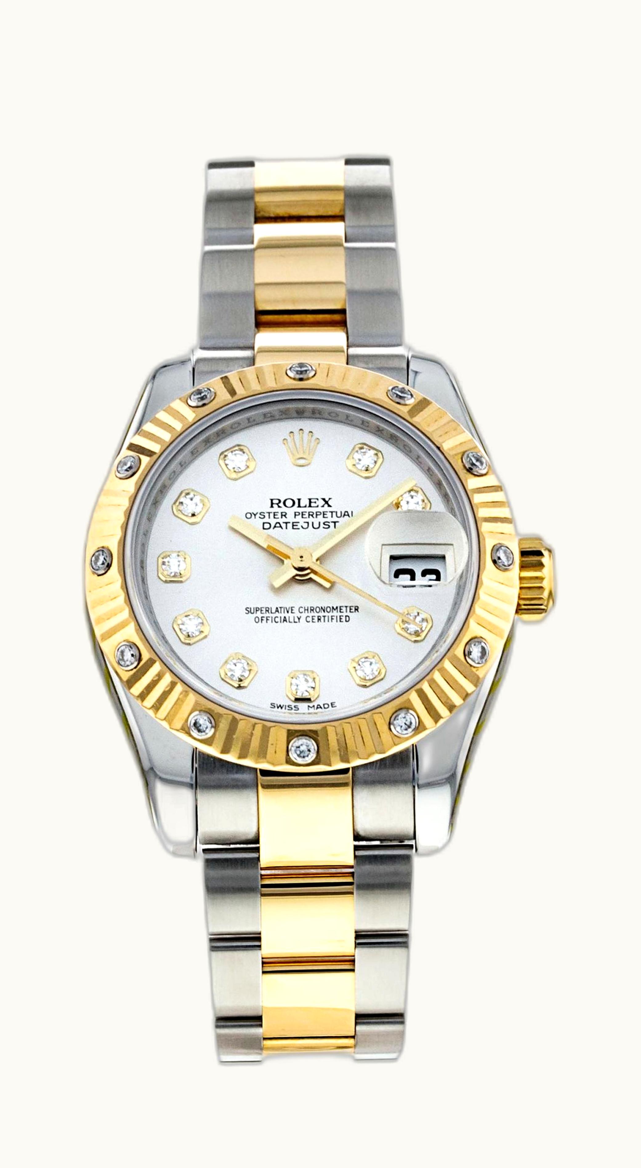 Rolex Lady-Datejust 26 Rolesor Fluted Diamond Mother-of-Pearl 179313-0017 | GLINT