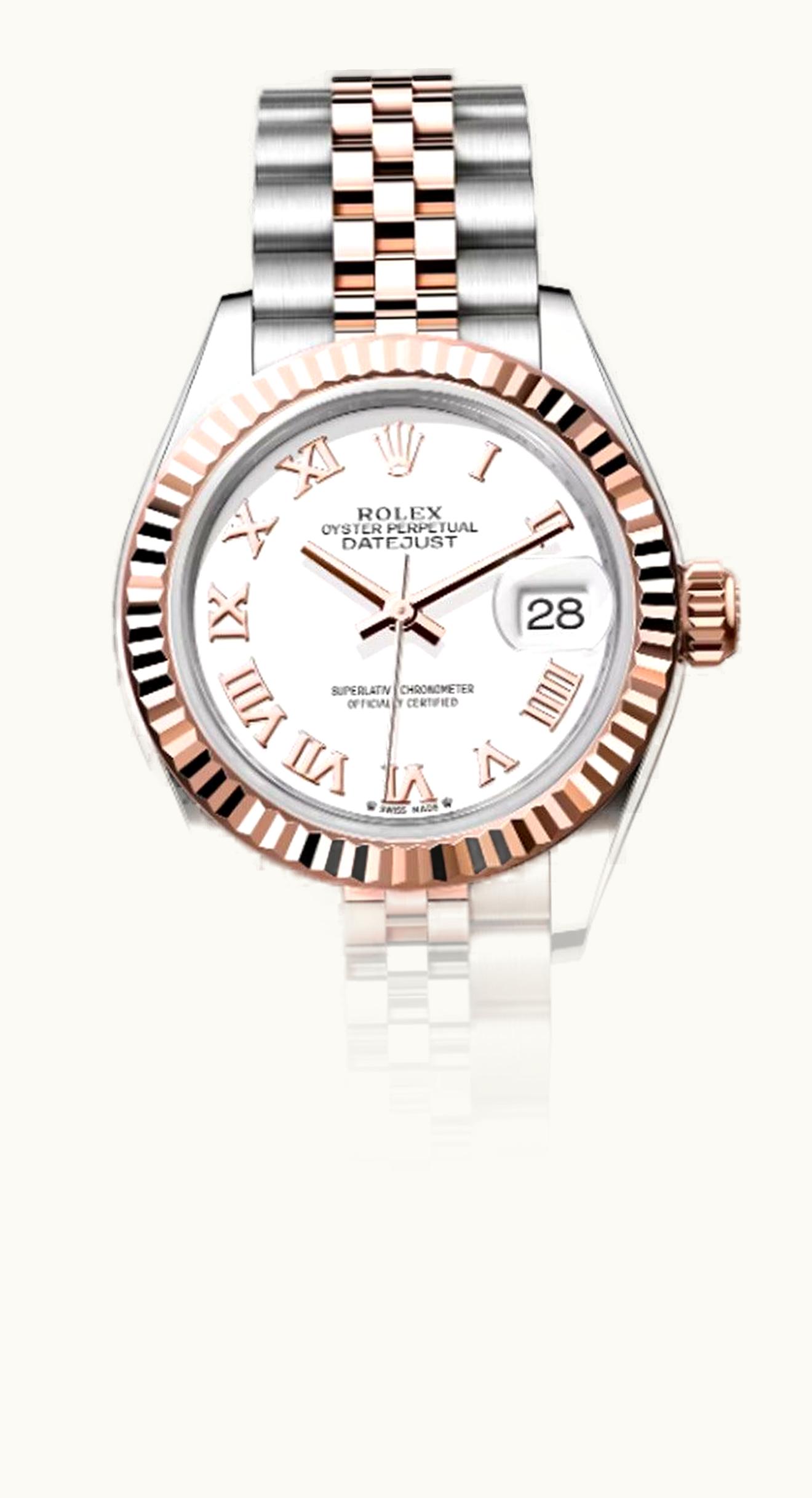 Rolex Lady-Datejust 28 Everose Diamond / Jubilee / White Roman 279135rbr-0024 | GLINT