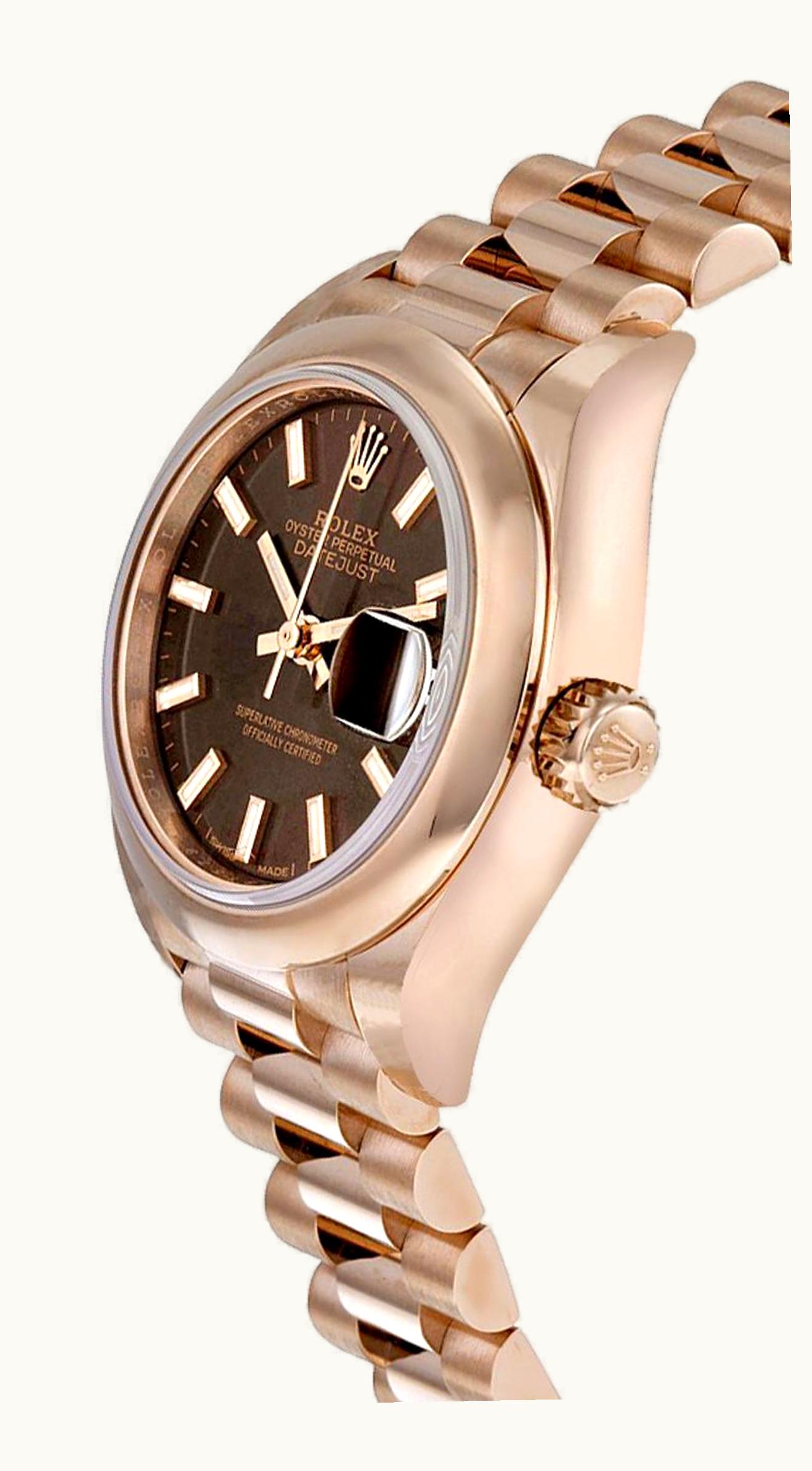 Rolex Lady-Datejust 28 Everose Domed / Jubilee / Chocolate 279165-0008 | GLINT