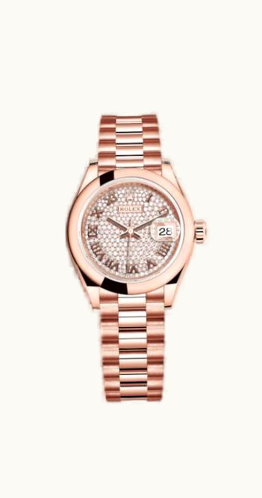 Rolex Lady-Datejust 28 Everose Domed / President / Paved Roman 279165-0023 | GLINT