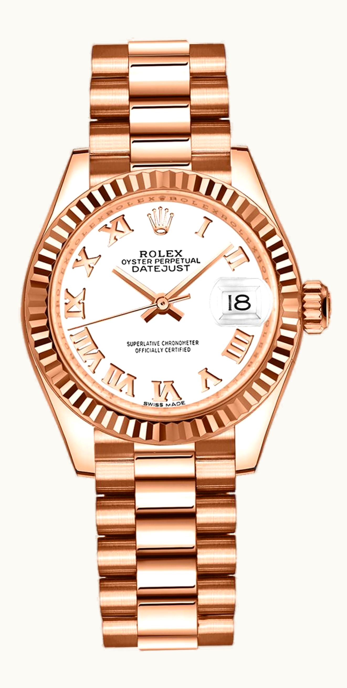Rolex Lady-Datejust 28 Everose Fluted / President / White Roman 279175-0021 | GLINT