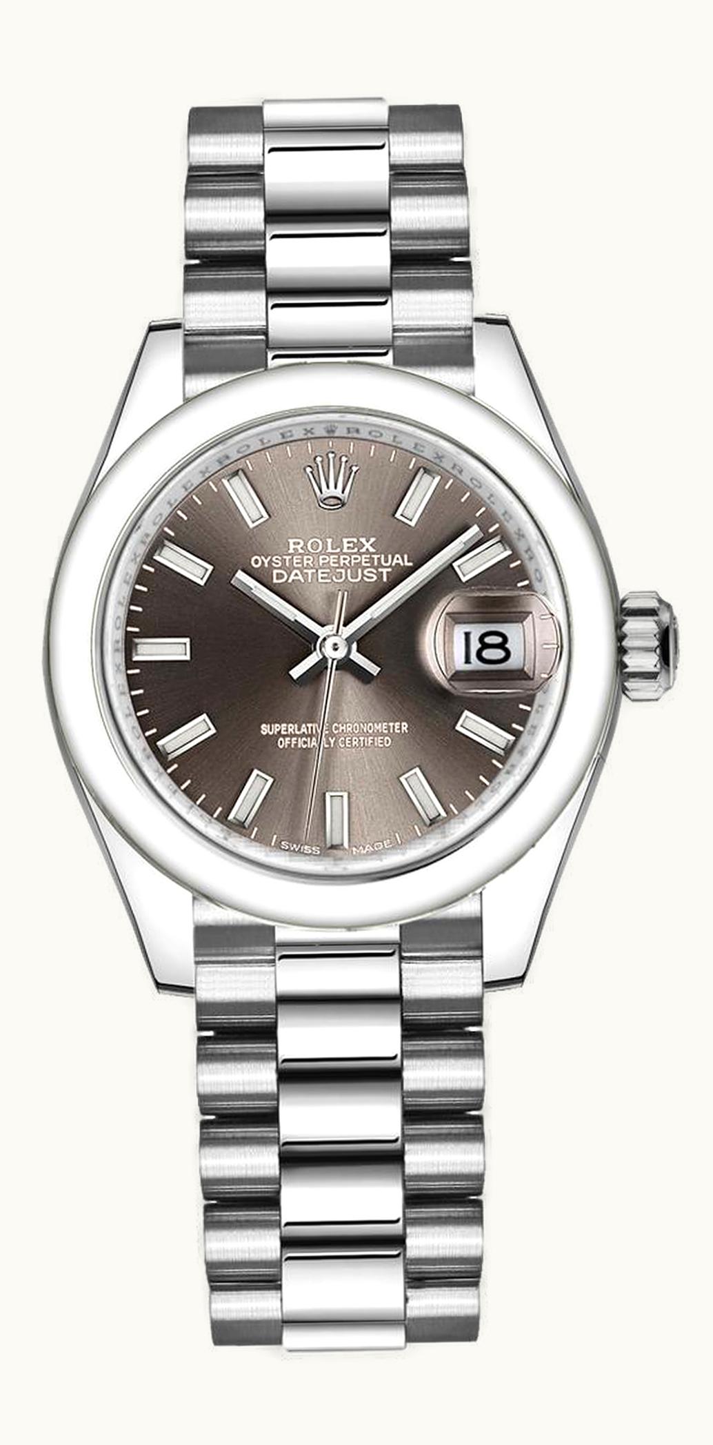 Rolex Lady-Datejust 28 Platinum Domed / President / Dark Grey 279166-0009 | GLINT