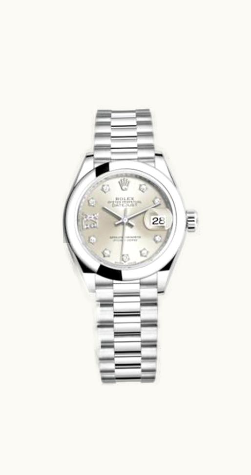 Rolex Lady-Datejust 28 Platinum Domed / President / Silver Diamond 279166-0001 | GLINT