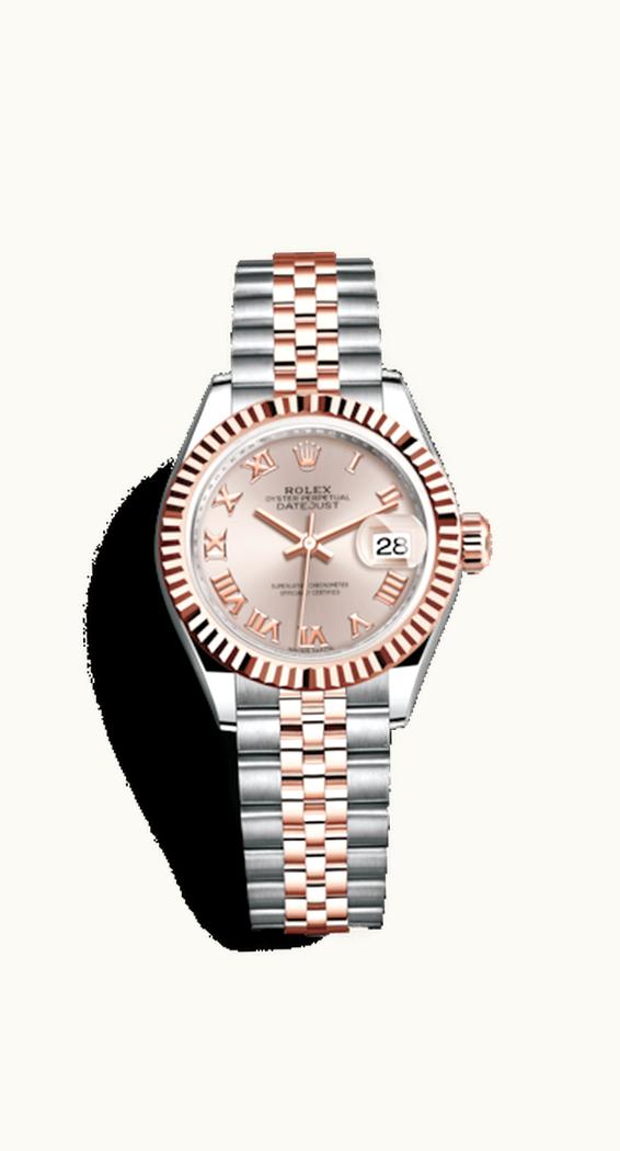 Rolex Lady-Datejust 28 Rolesor Rose Fluted / Jubilee / Sundust Roman 279171-0005 | GLINT