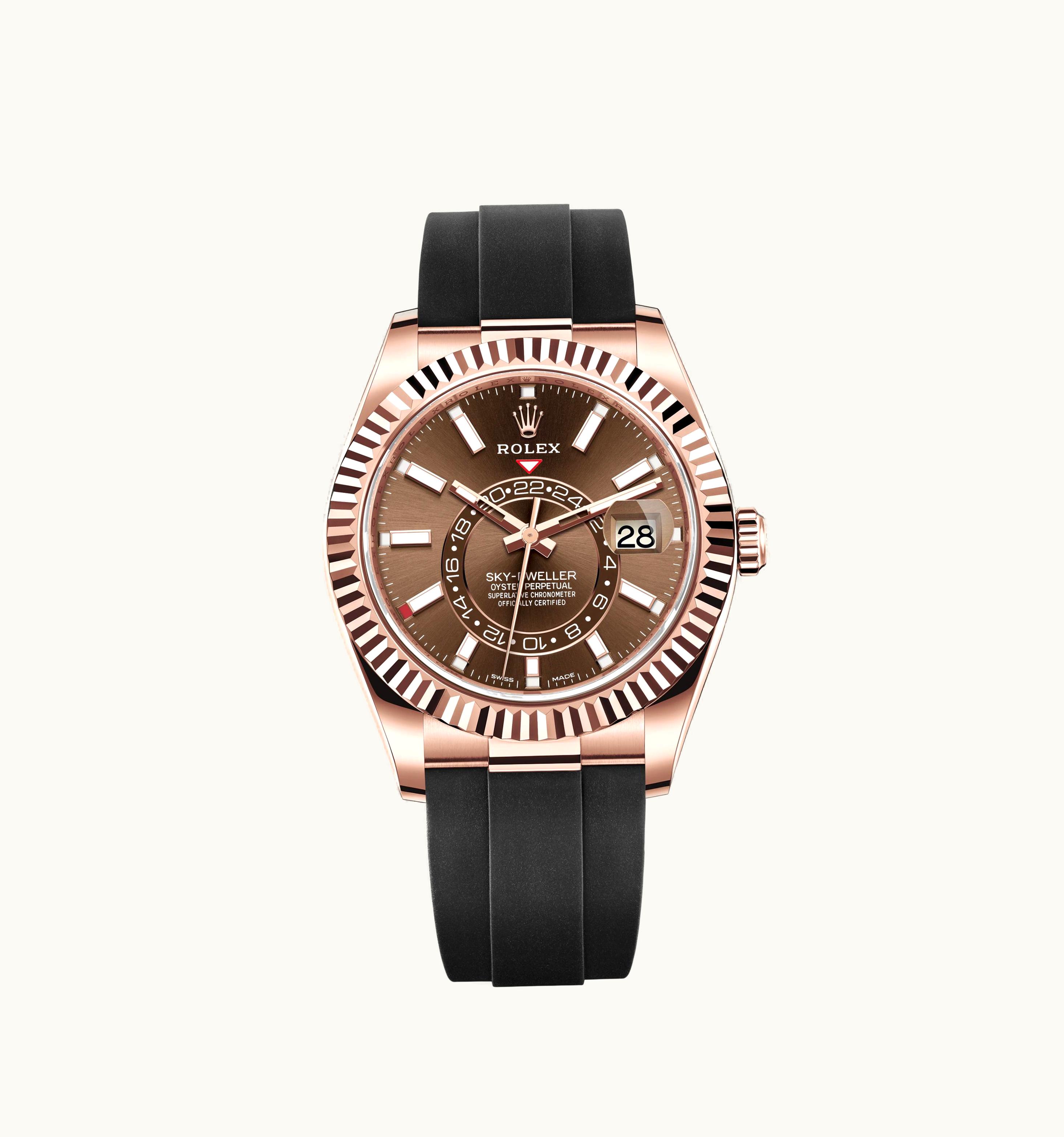 Rolex Sky-Dweller Everose / Chocolate / Oysterflex 326235-0005 (aka: M326235-0005) | GLINT