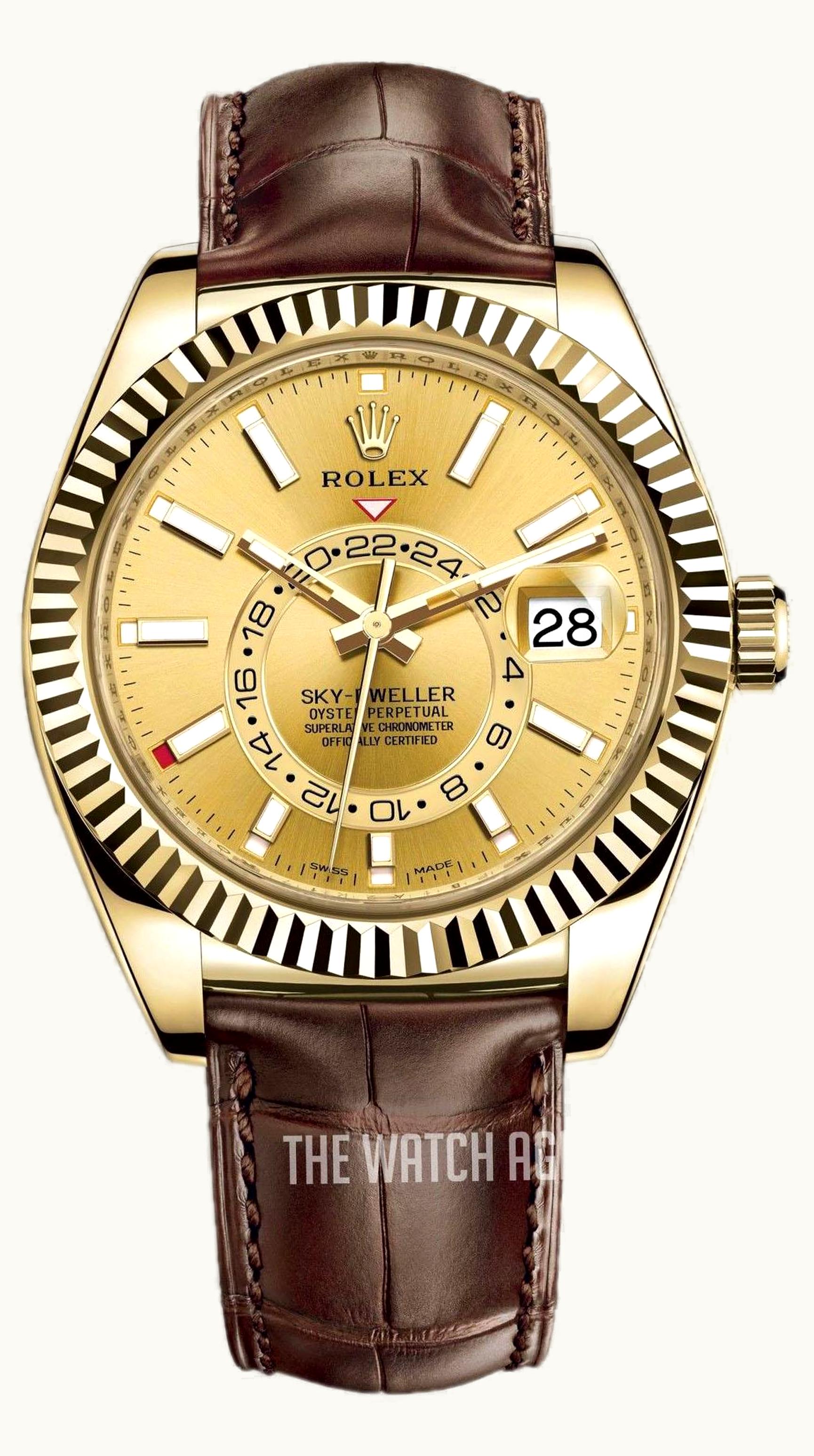 Rolex Sky-Dweller Yellow Gold / Champagne / Alligator 326138-0006 | GLINT