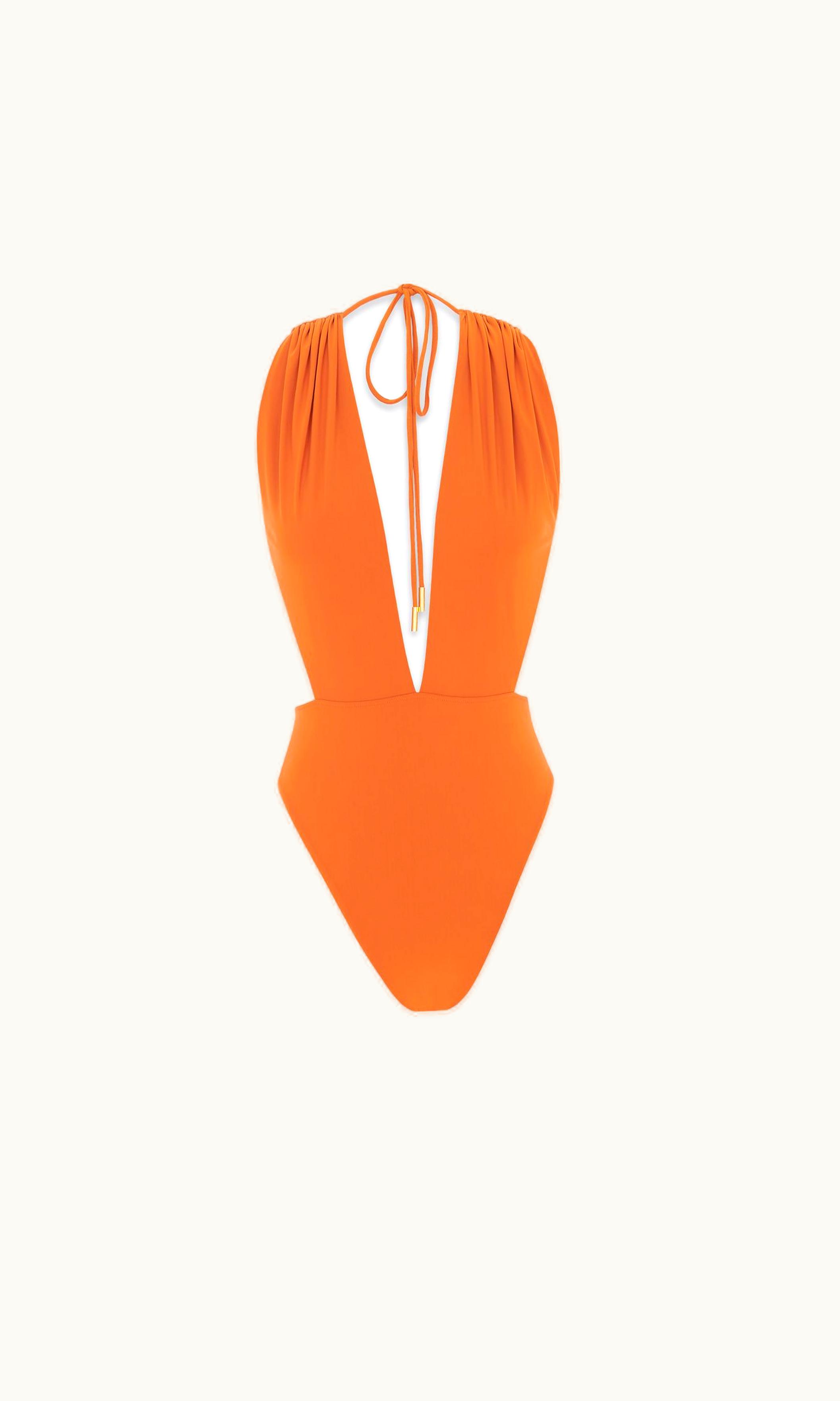 Saint Laurent Backless V-Halter Swimsuit Orange | GLINT