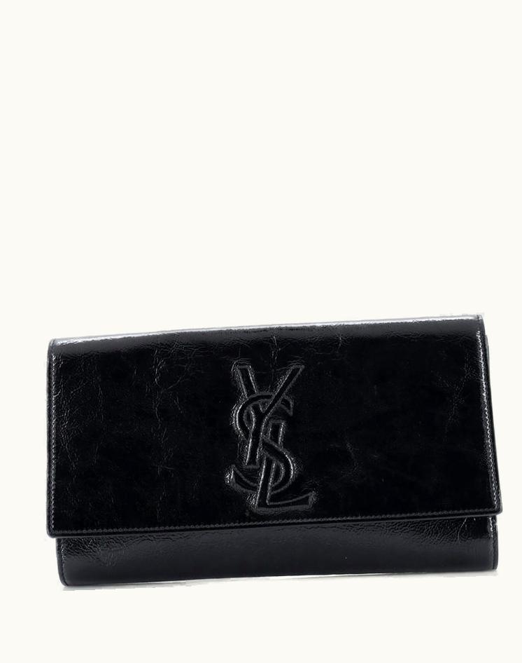 Saint Laurent Belle De Jour Clutch Leather Large Black Patent Gold | GLINT