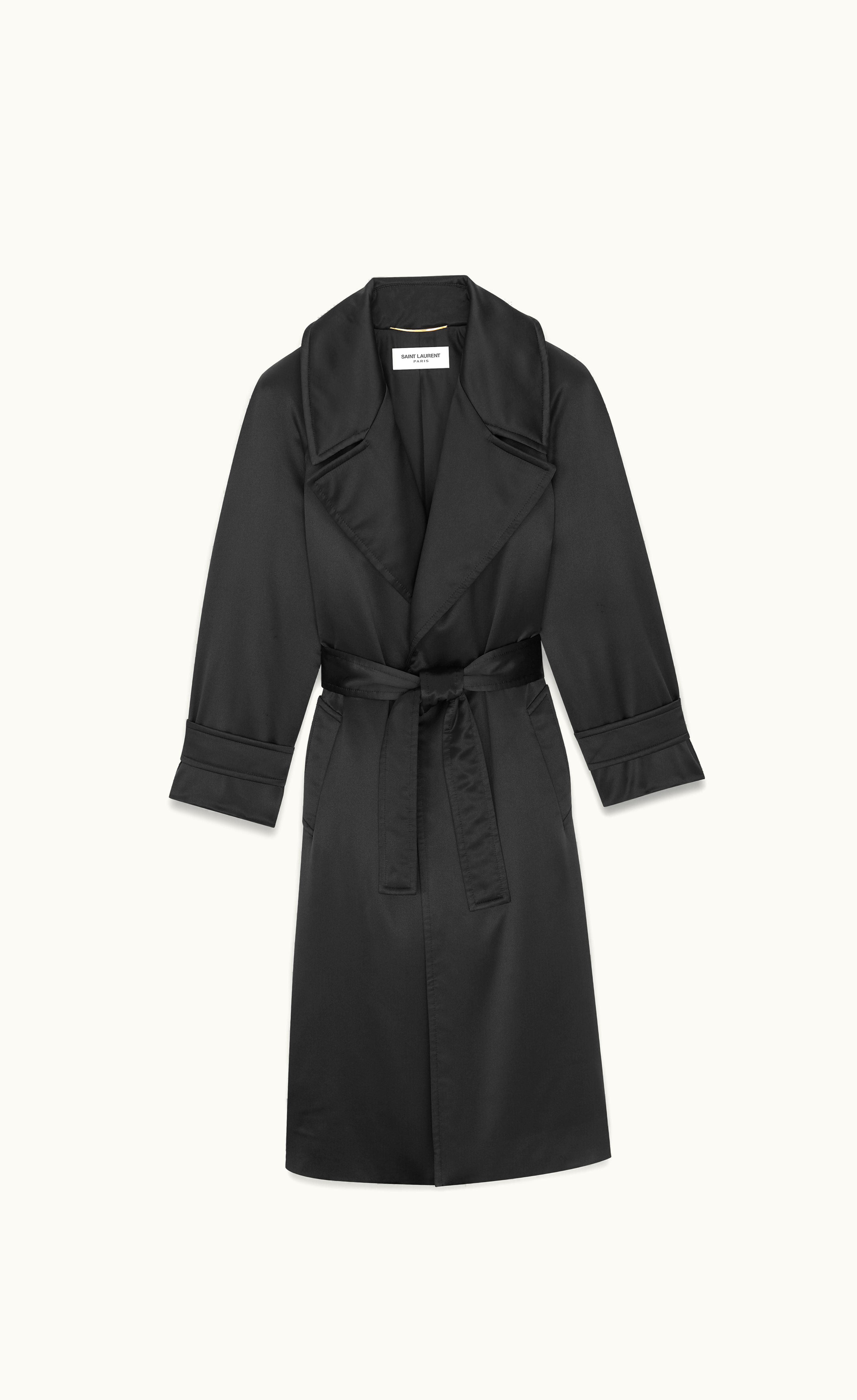 Saint Laurent Belted Coat In Crepe Satin | GLINT