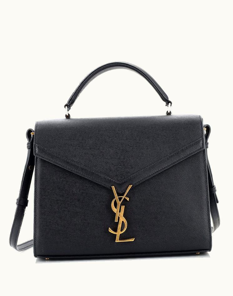 Saint Laurent Cassandra Top Handle Bag Leather Medium Black/Red | GLINT
