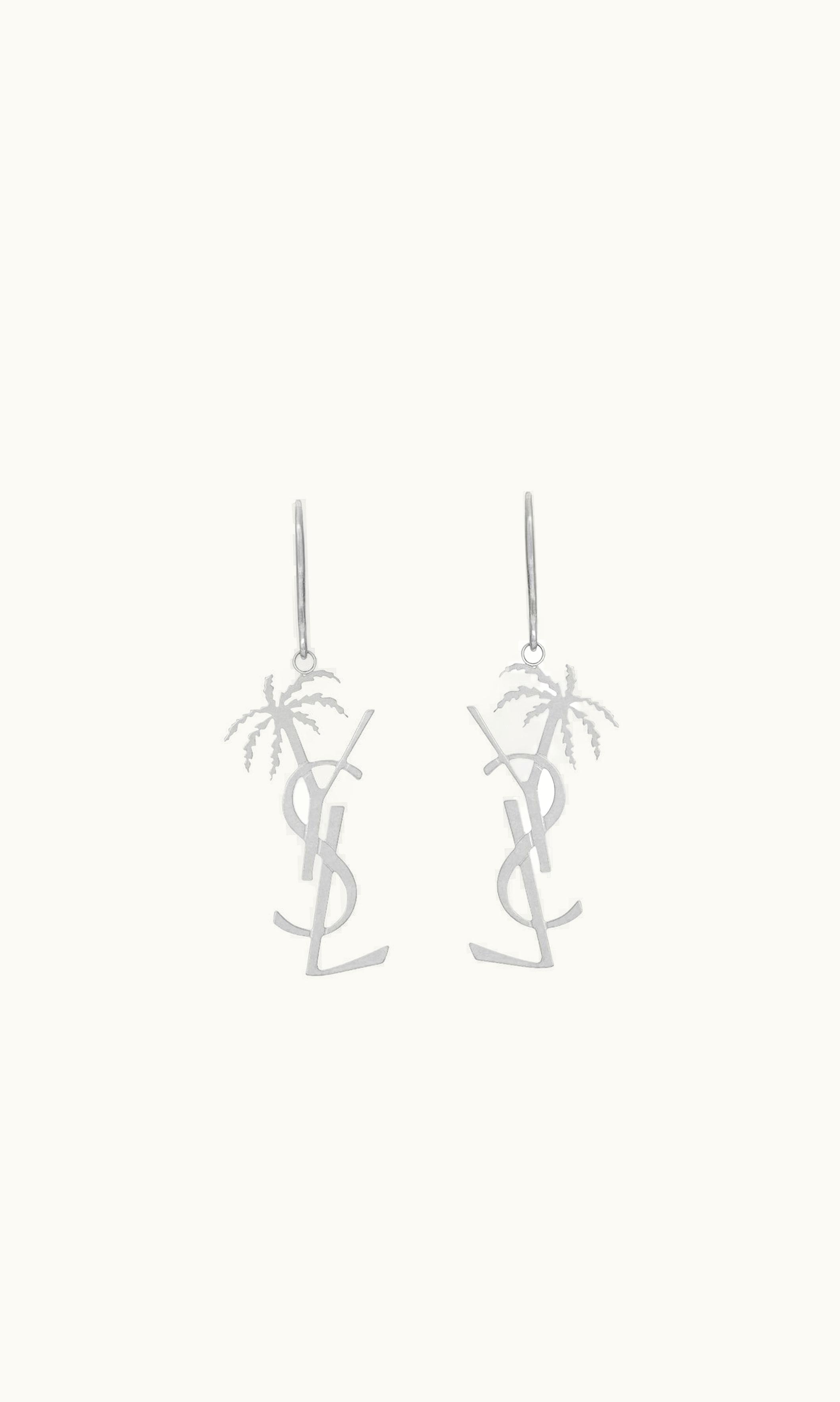 Saint Laurent Cassandre Palm Earrings In Metal UZ0159185 | GLINT
