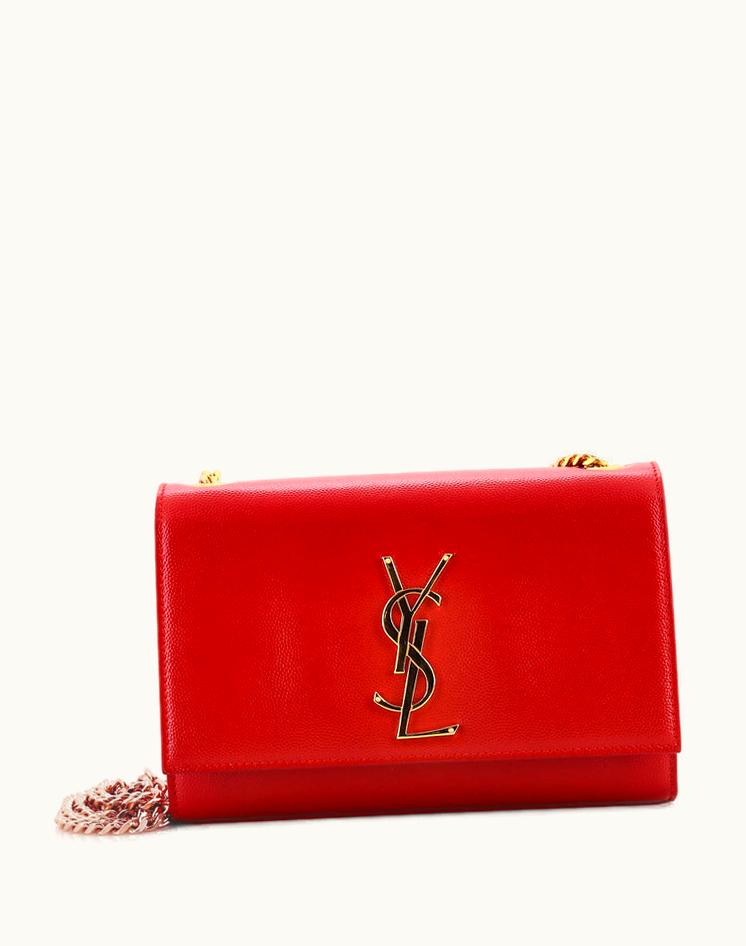 Saint Laurent Classic Monogram Crossbody Bag Grainy Leather Small Red-Gold | GLINT
