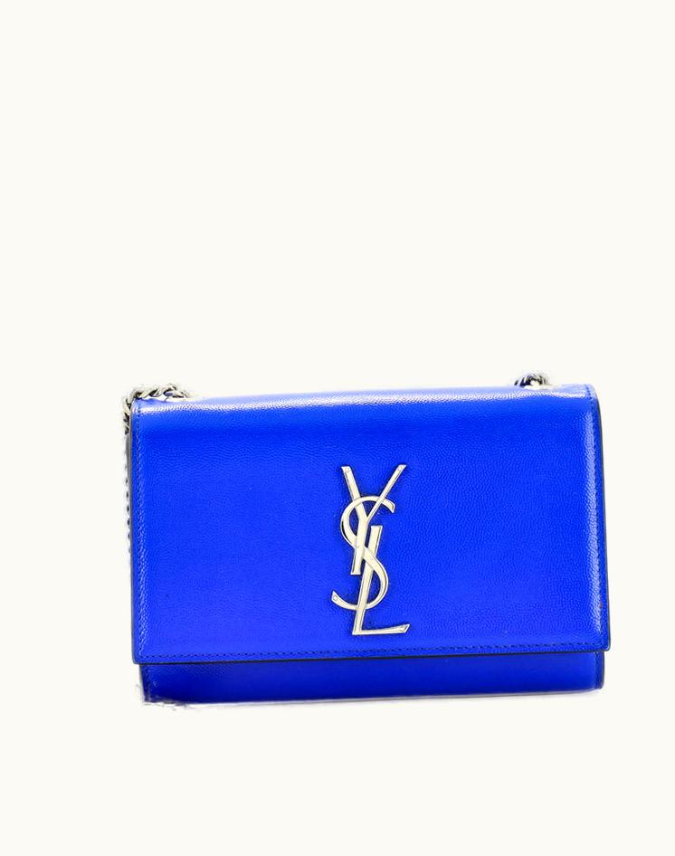 Saint Laurent Classic Monogram Crossbody Bag Grainy Patent Small Blue | GLINT