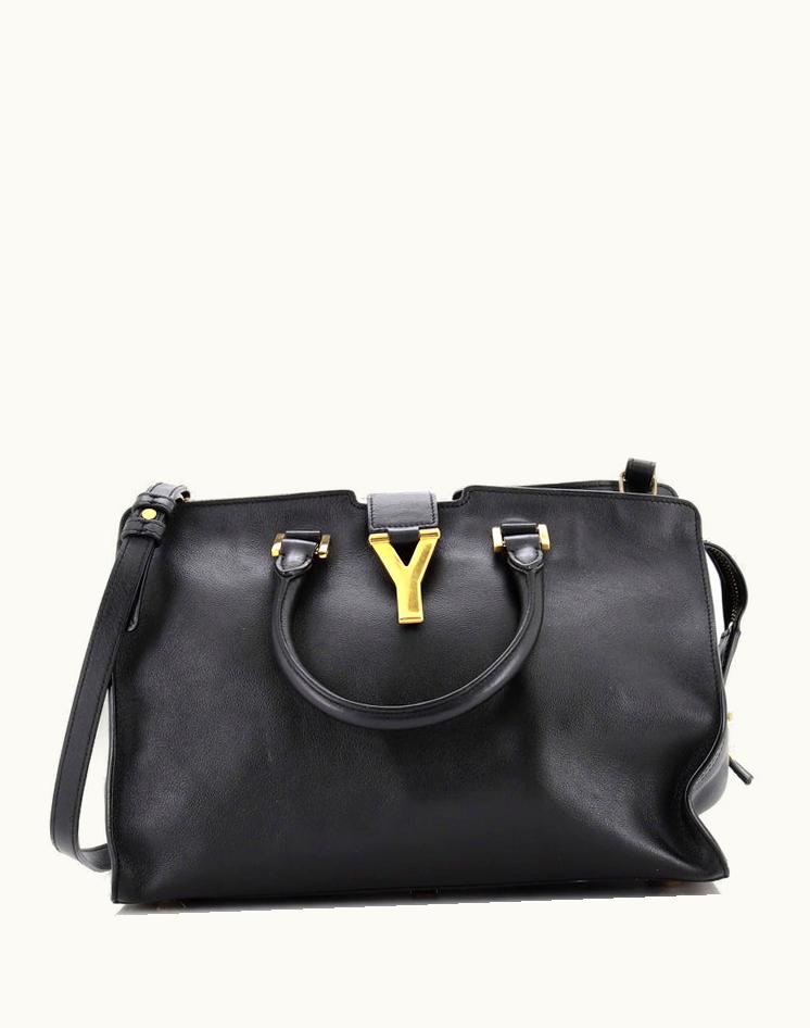 Saint Laurent Classic Y Cabas Leather Small Tote Black Gold | GLINT