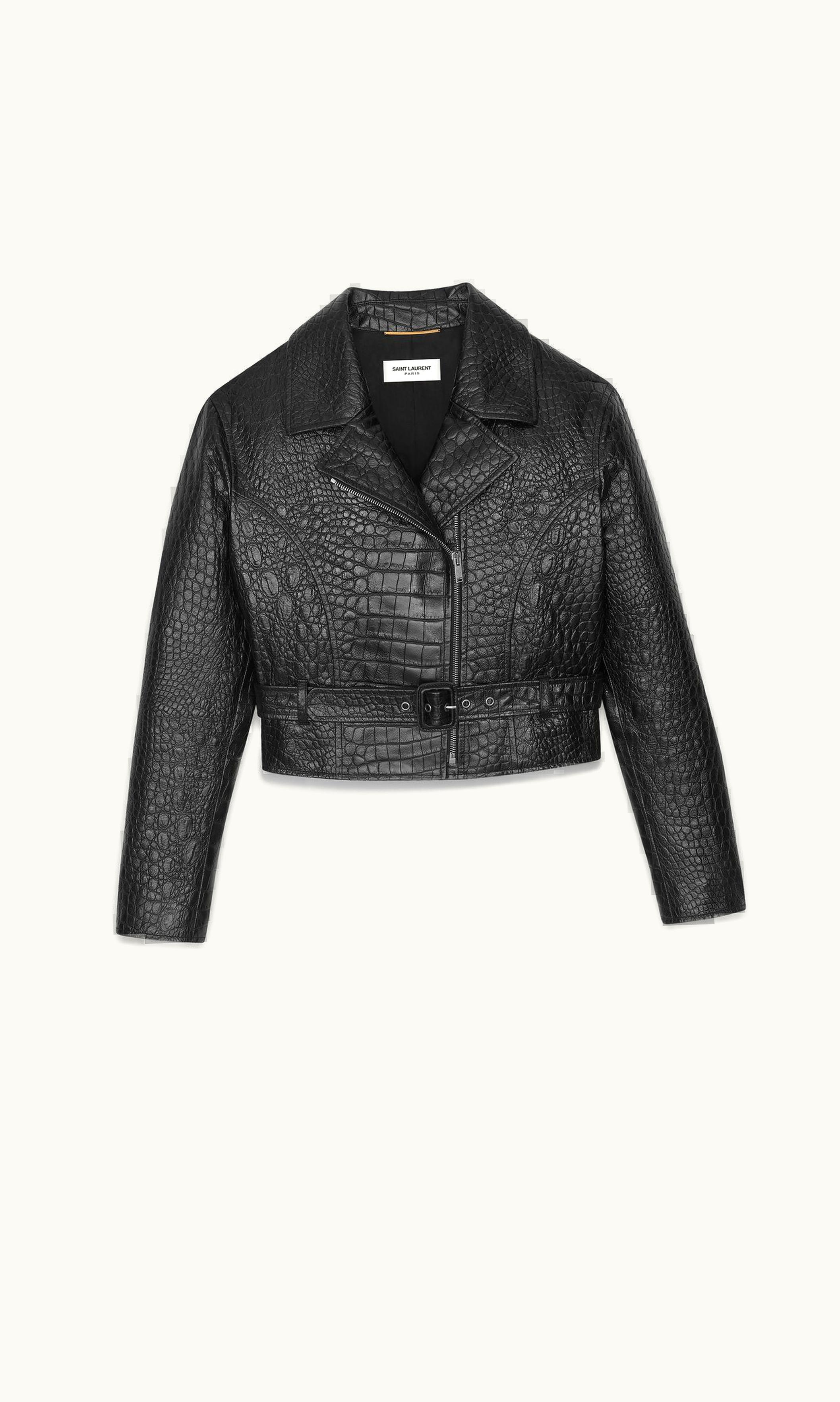 Saint Laurent Cropped Jacket In Crocodile-Embossed Leather | GLINT