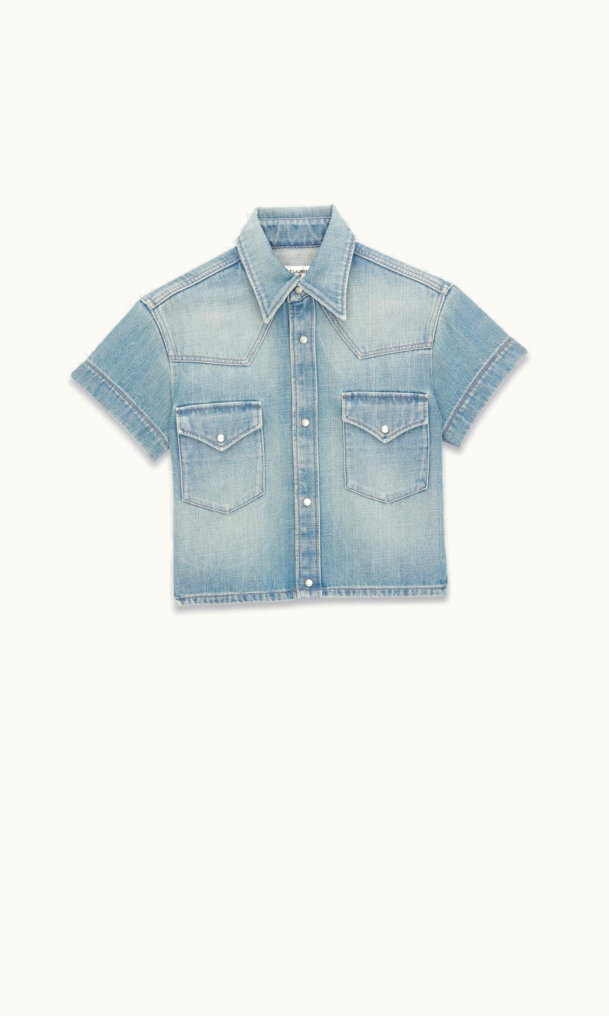 Saint Laurent Cropped Shirt In Blue Twill Denim | GLINT