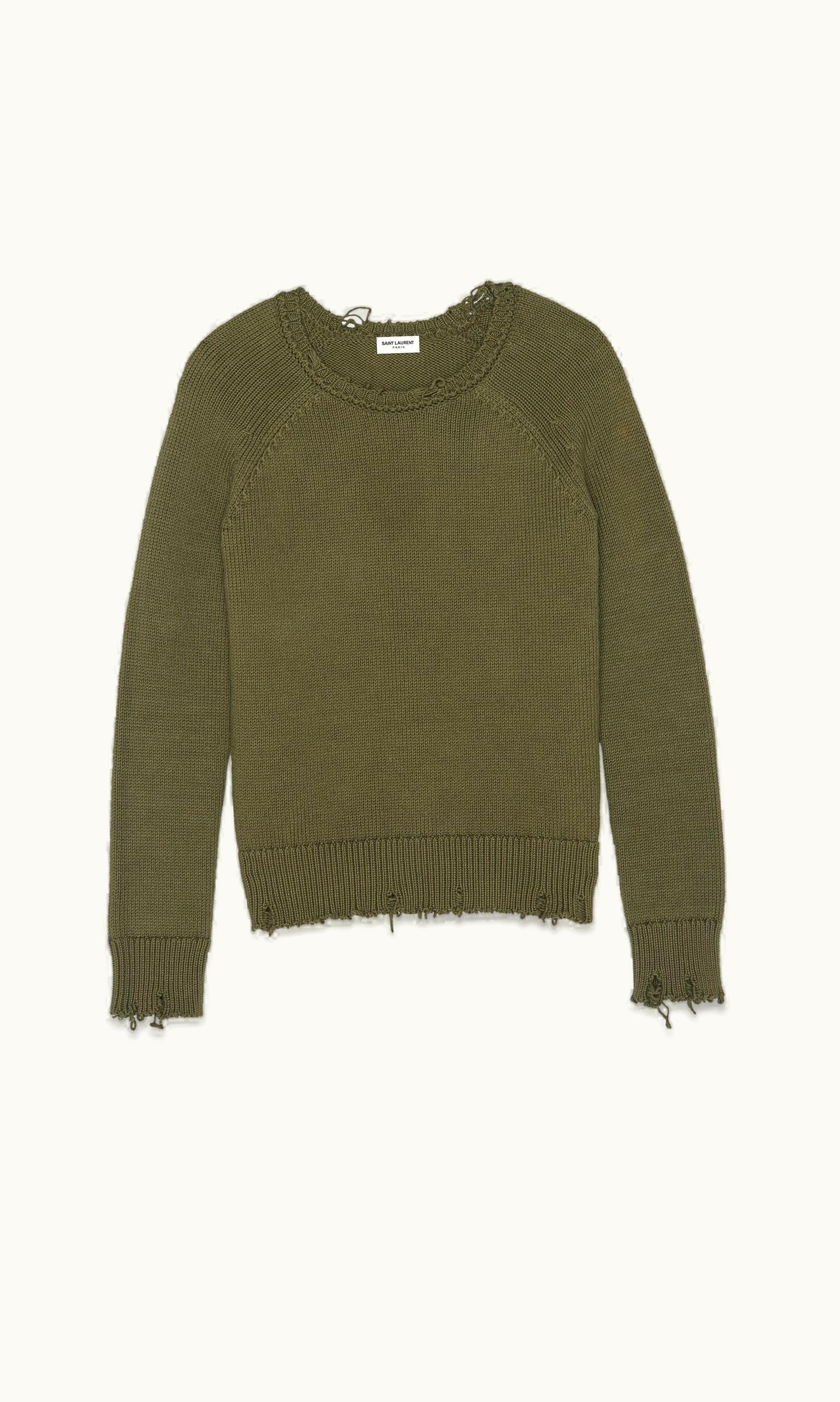 Saint Laurent Destroyed Knit Sweater Khaki | GLINT
