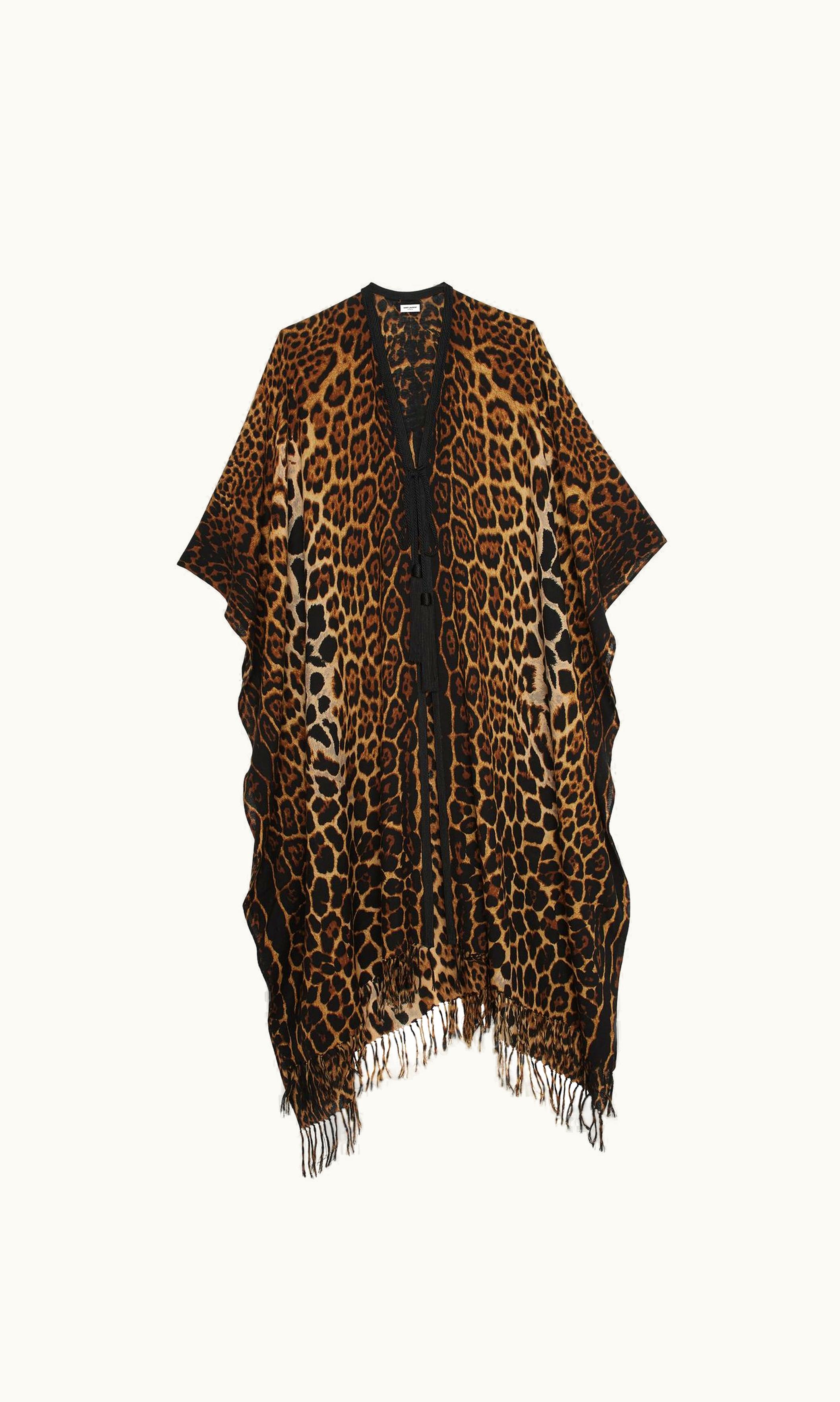 Saint Laurent Fringed Leopard-Print Poncho In Wool Canvas | GLINT