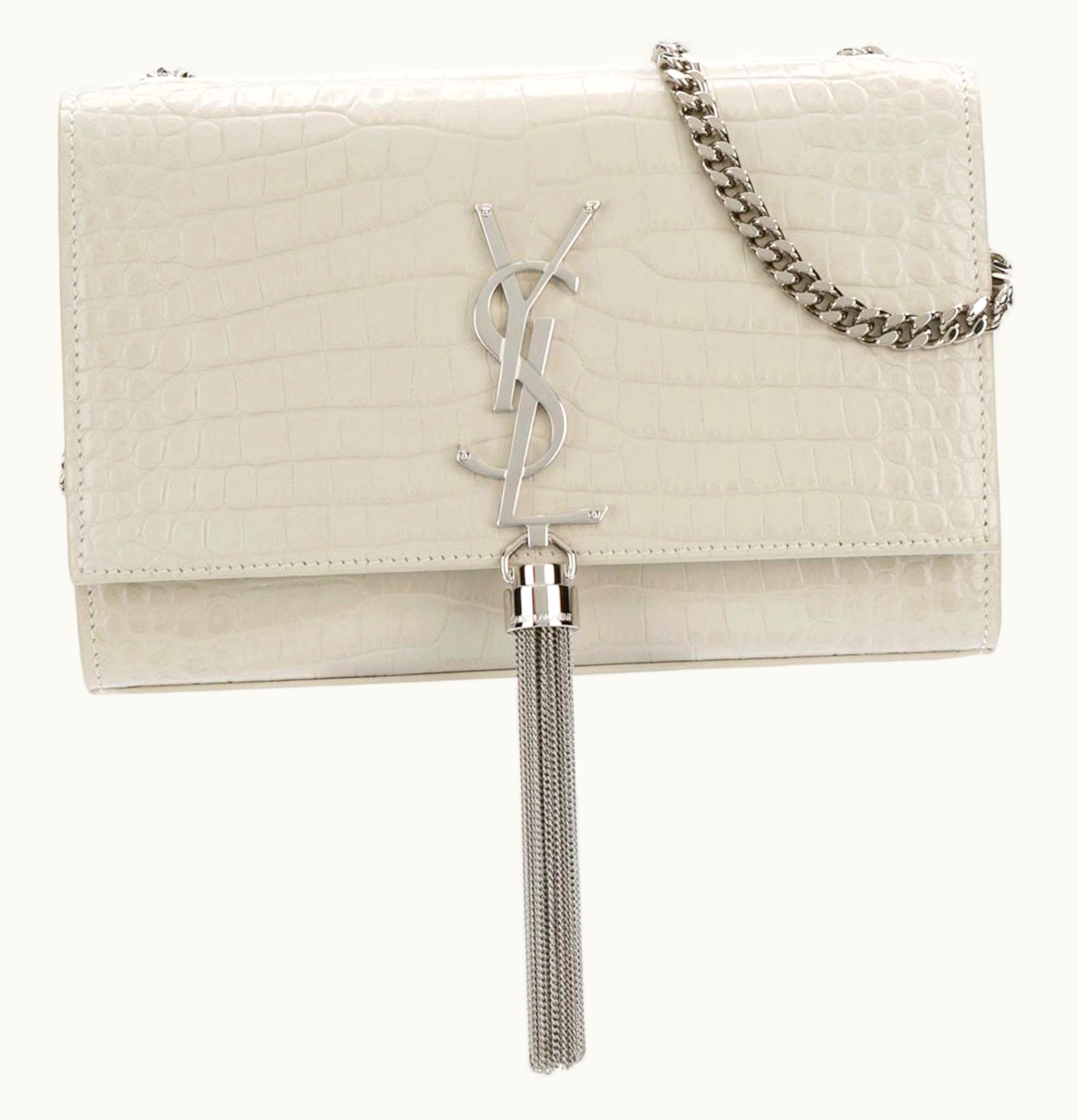 Saint Laurent Kate Tassel Crossbody Crocodile Embossed White | GLINT