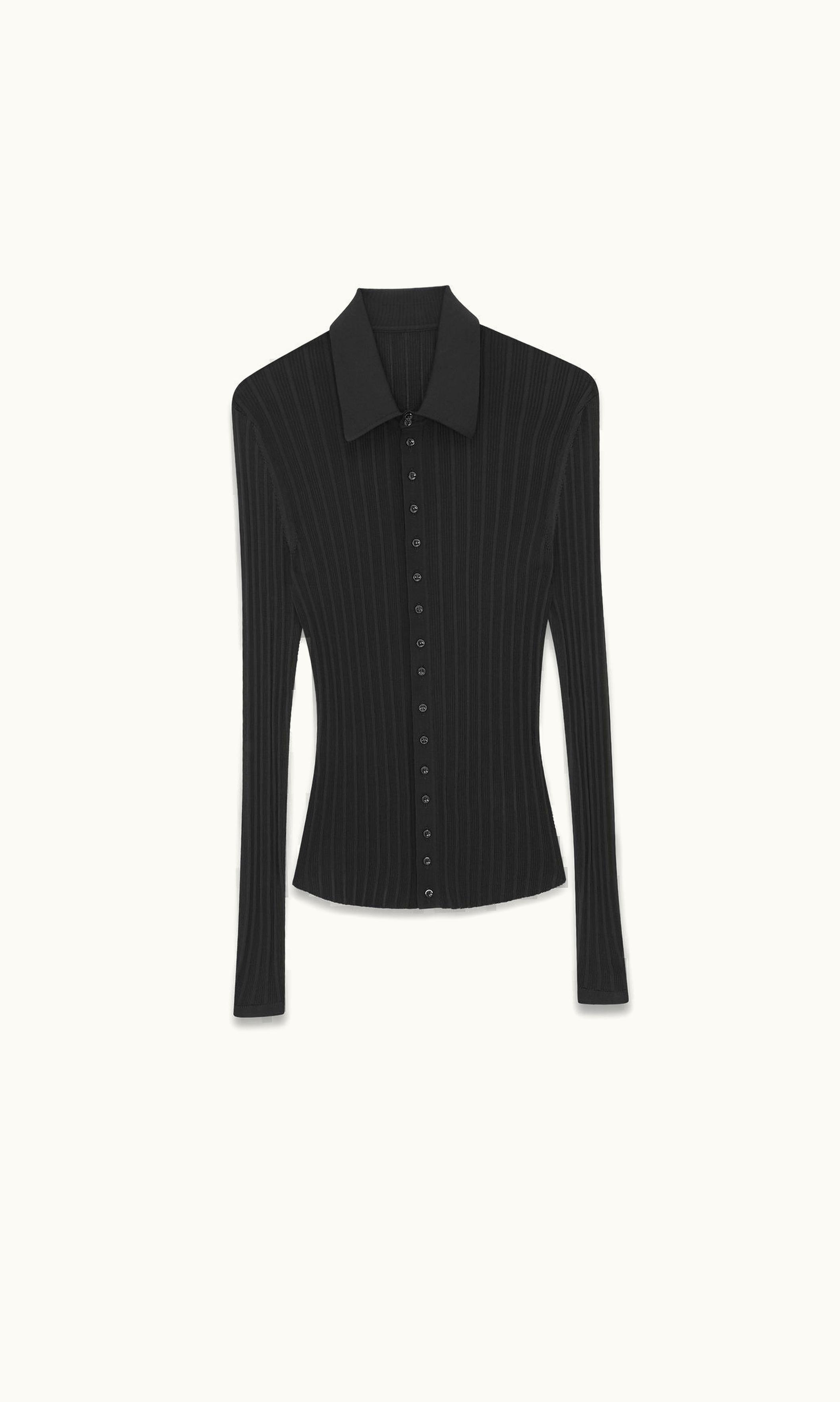Saint Laurent Knitted Shirt In Ribbed Silk | GLINT