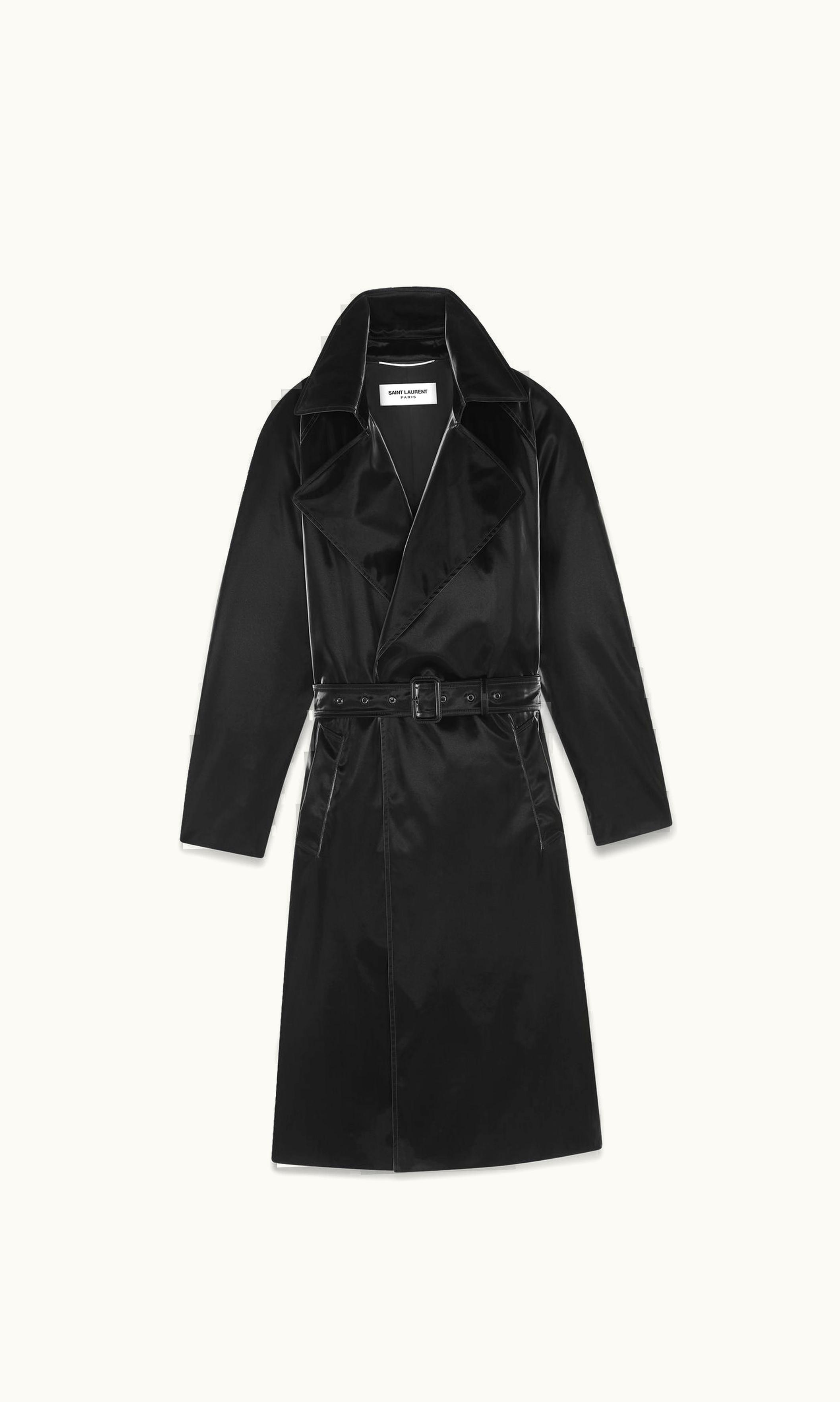Saint Laurent Lacquered-Effect Belted Coat | GLINT
