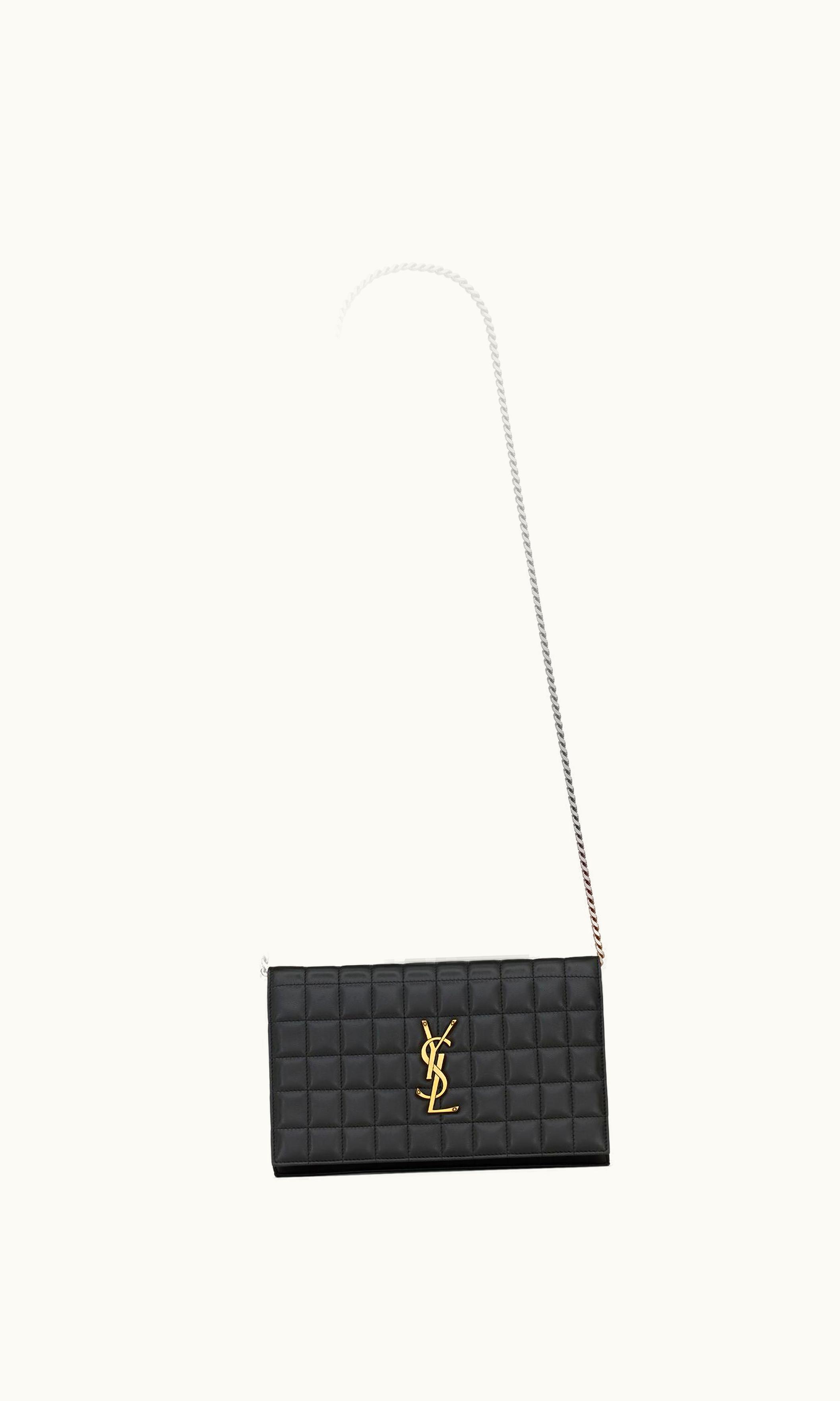 Saint Laurent Lambskin Cassandre Chain Wallet Black | GLINT