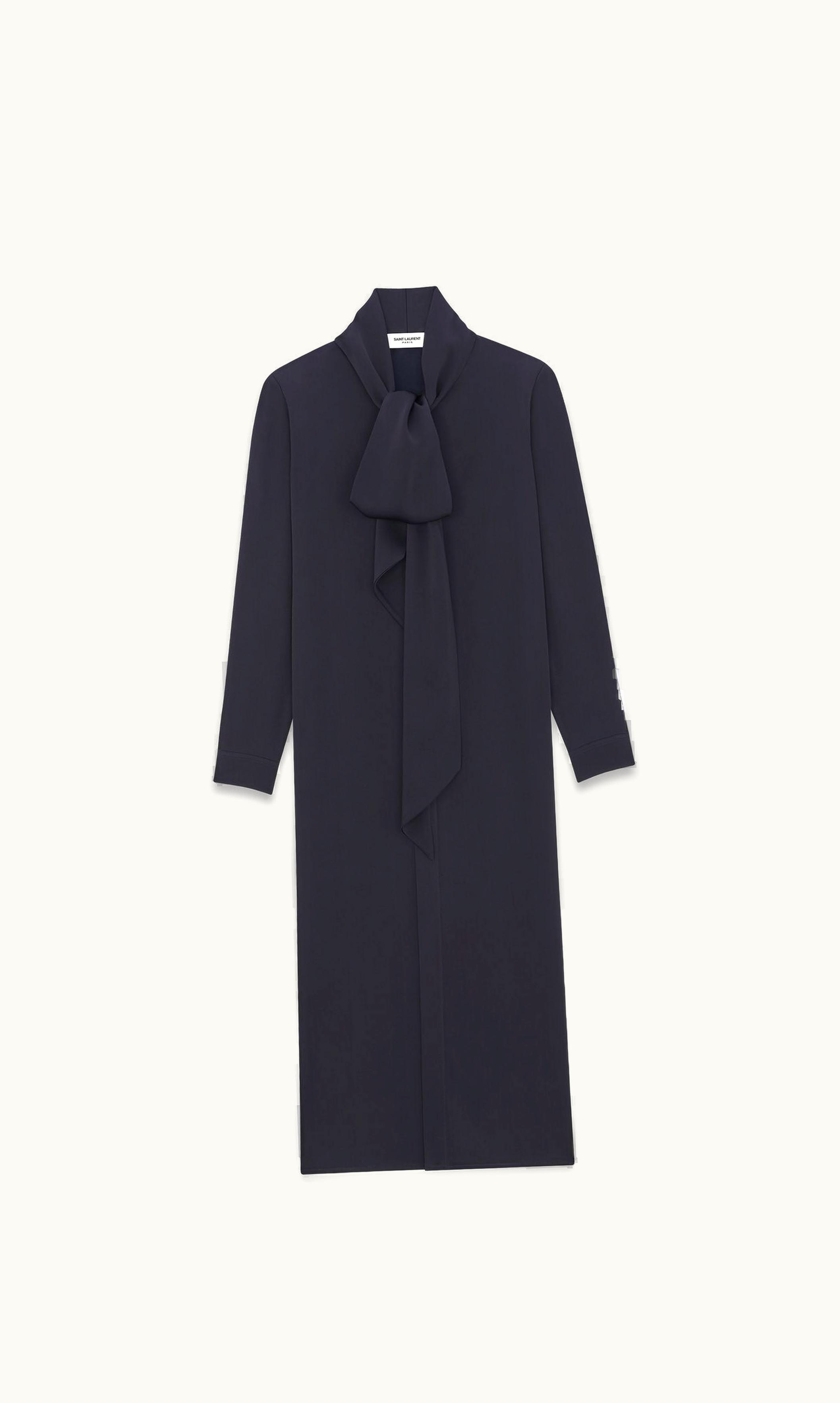 Saint Laurent Lavallière-Neck Long Shirt In Crepe Satin | GLINT