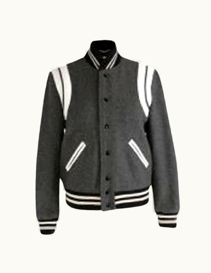 Saint Laurent Leather Trimmed Grey Teddy Jacket UZ0584997 | GLINT