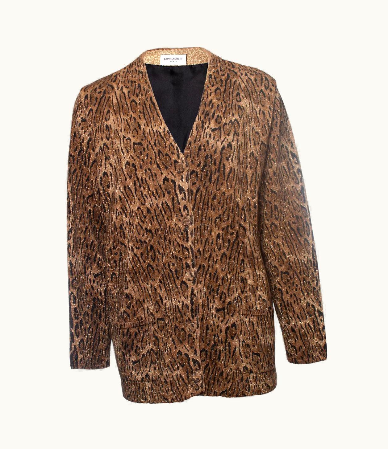 Saint Laurent, Leopard Print Lame Wool Cardigan | GLINT