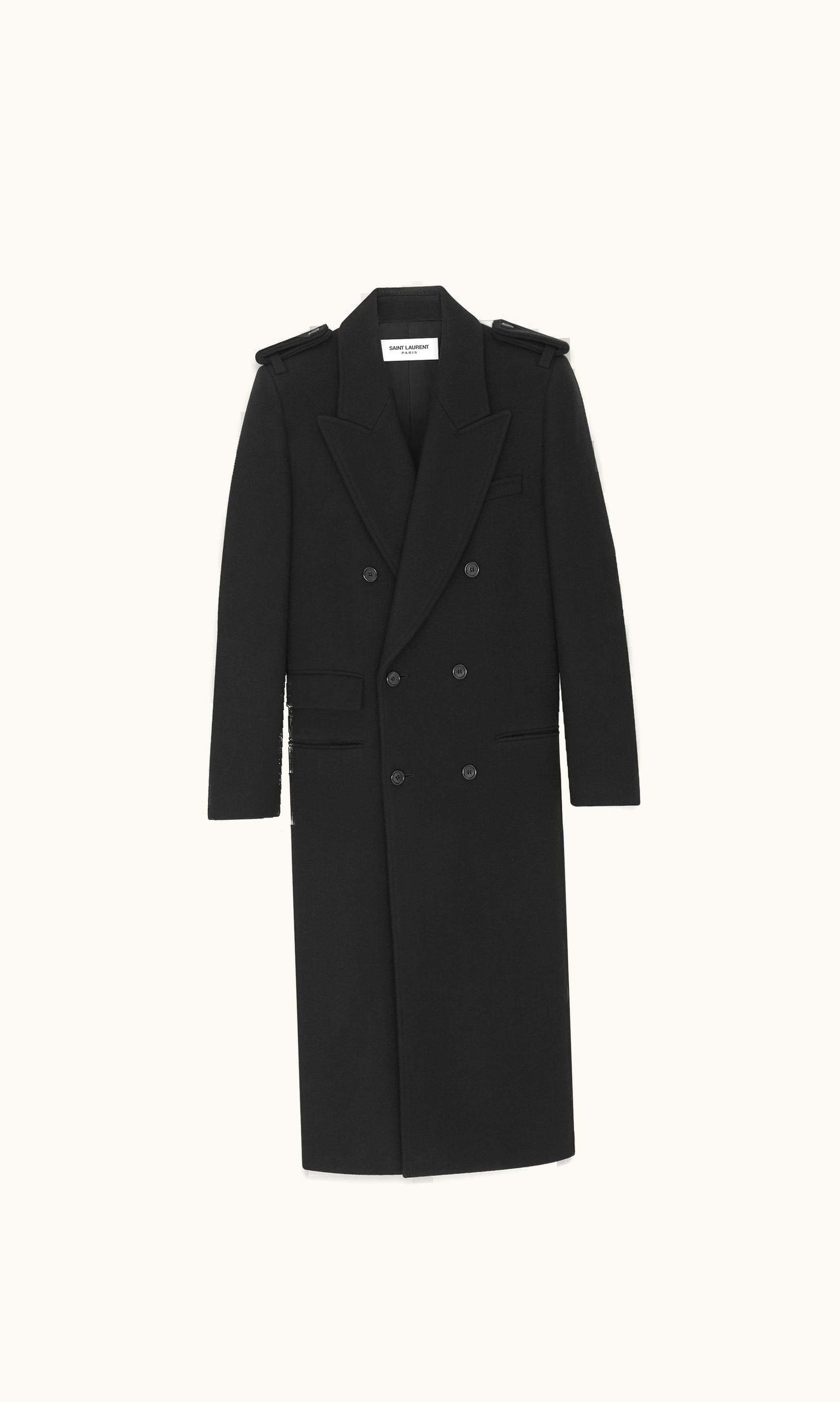 Saint Laurent Long Officer Coat In Wool Gabardine | GLINT