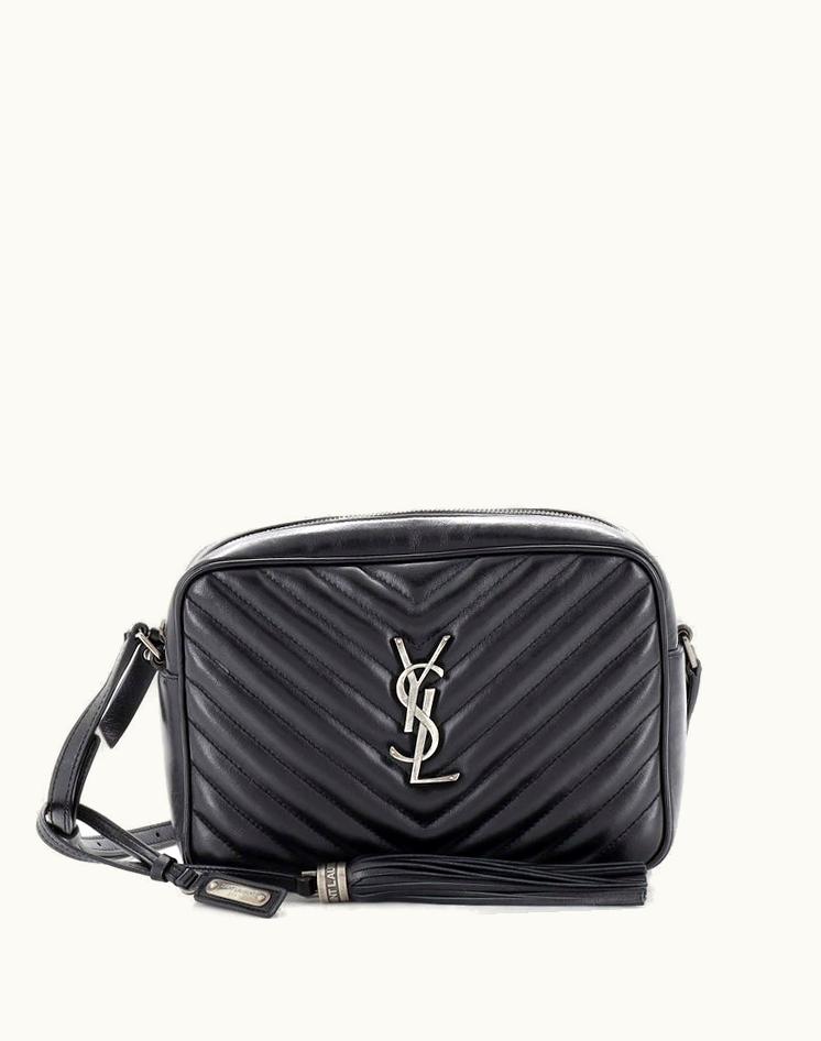 Saint Laurent Lou Camera Bag Matelasse Chevron Leather Small Black Aged Silver | GLINT