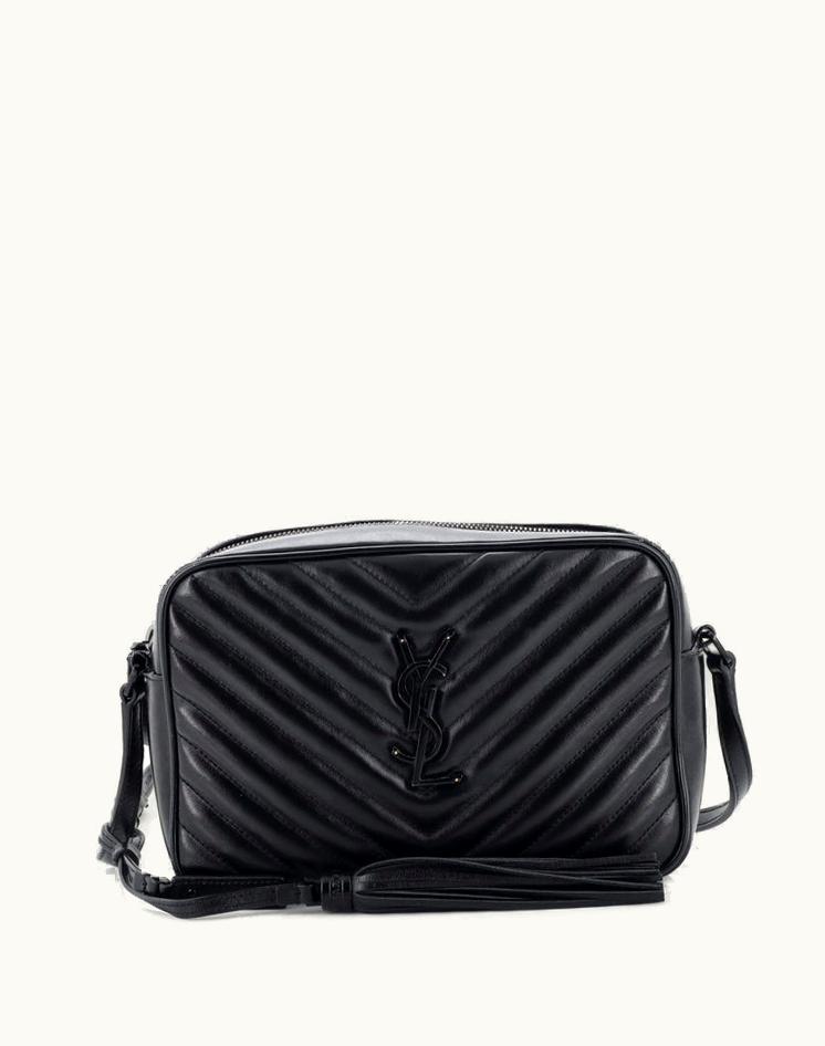Saint Laurent Lou Camera Bag Matelasse Chevron Leather Small in Black Luxe | GLINT