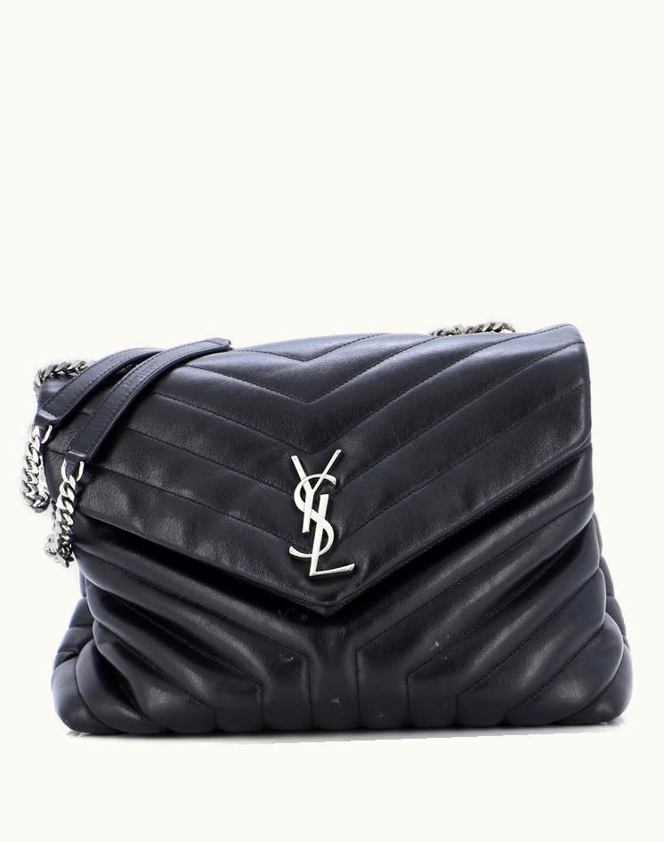 Saint Laurent Loulou Bag Matelasse Chevron Leather Medium Black Aged Silver | GLINT