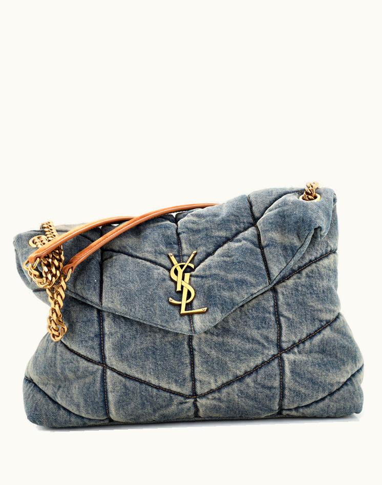 Saint Laurent Loulou Puffer Shoulder Bag Quilted Leather Medium in Blue | GLINT