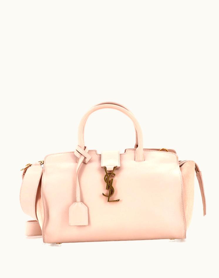 Saint Laurent Monogram Cabas Downtown Leather Baby Suede Pink | GLINT