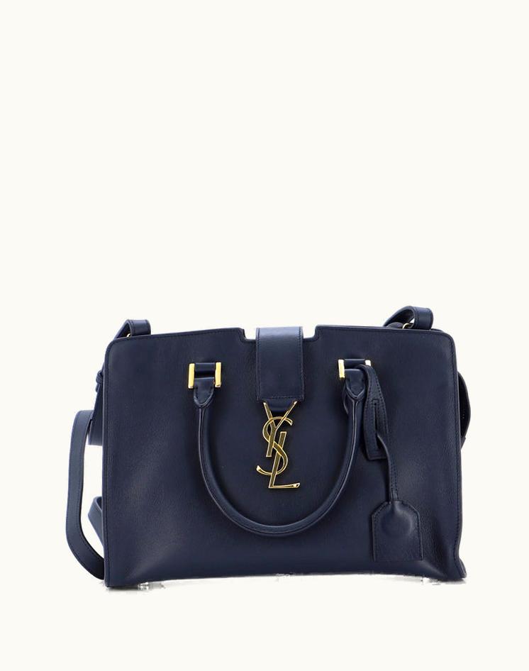 Saint Laurent Monogram Cabas Leather Baby Tote Blue Gold | GLINT