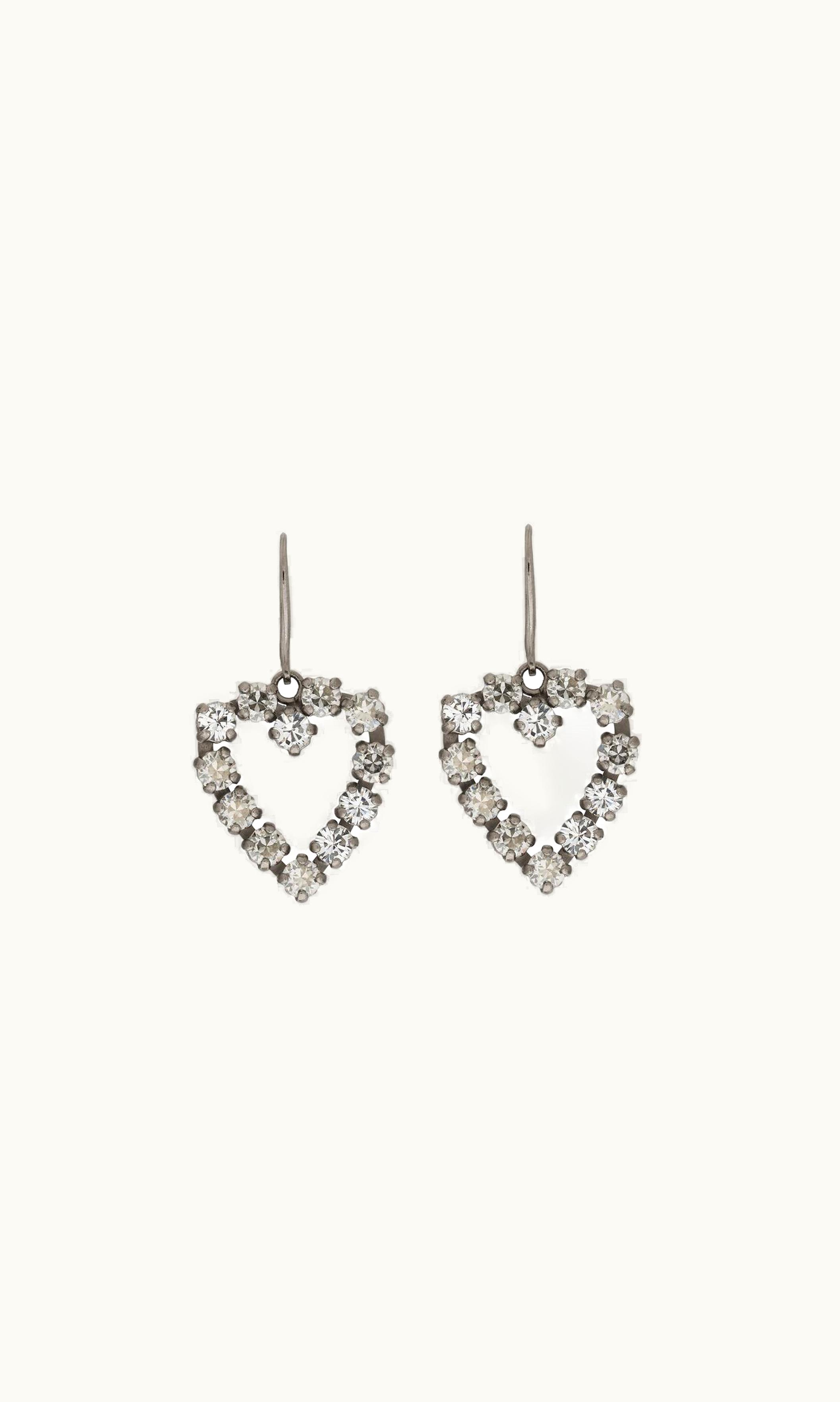 Saint Laurent Rhinestone Open Heart Earrings In Metal | GLINT