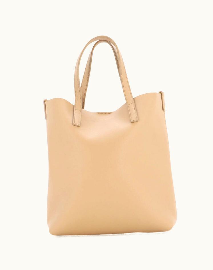 Saint Laurent Shopper Tote Leather Toy Neutral Luxe Gold | GLINT