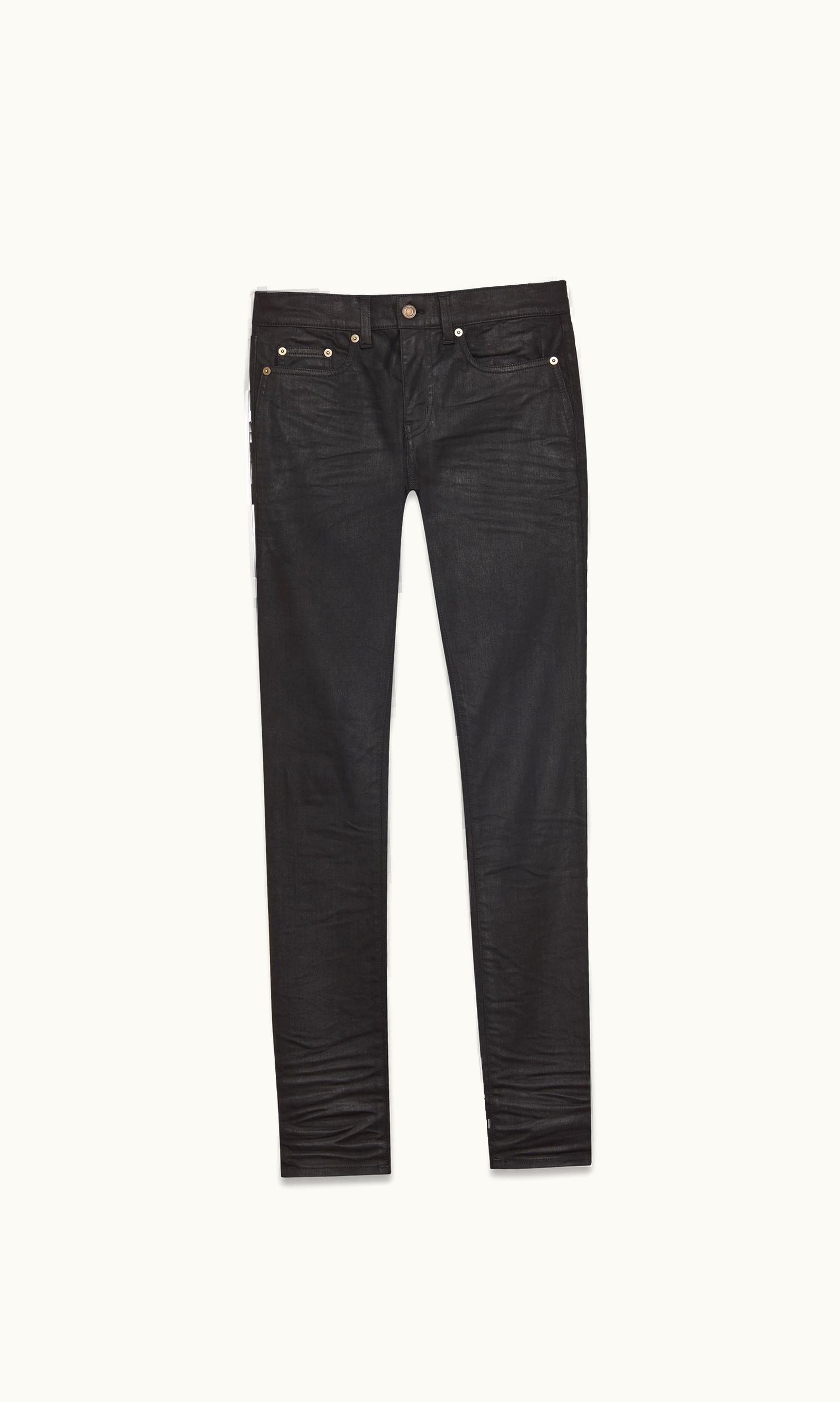 Saint Laurent Skinny-Fit Jeans In Coated Black Denim | GLINT