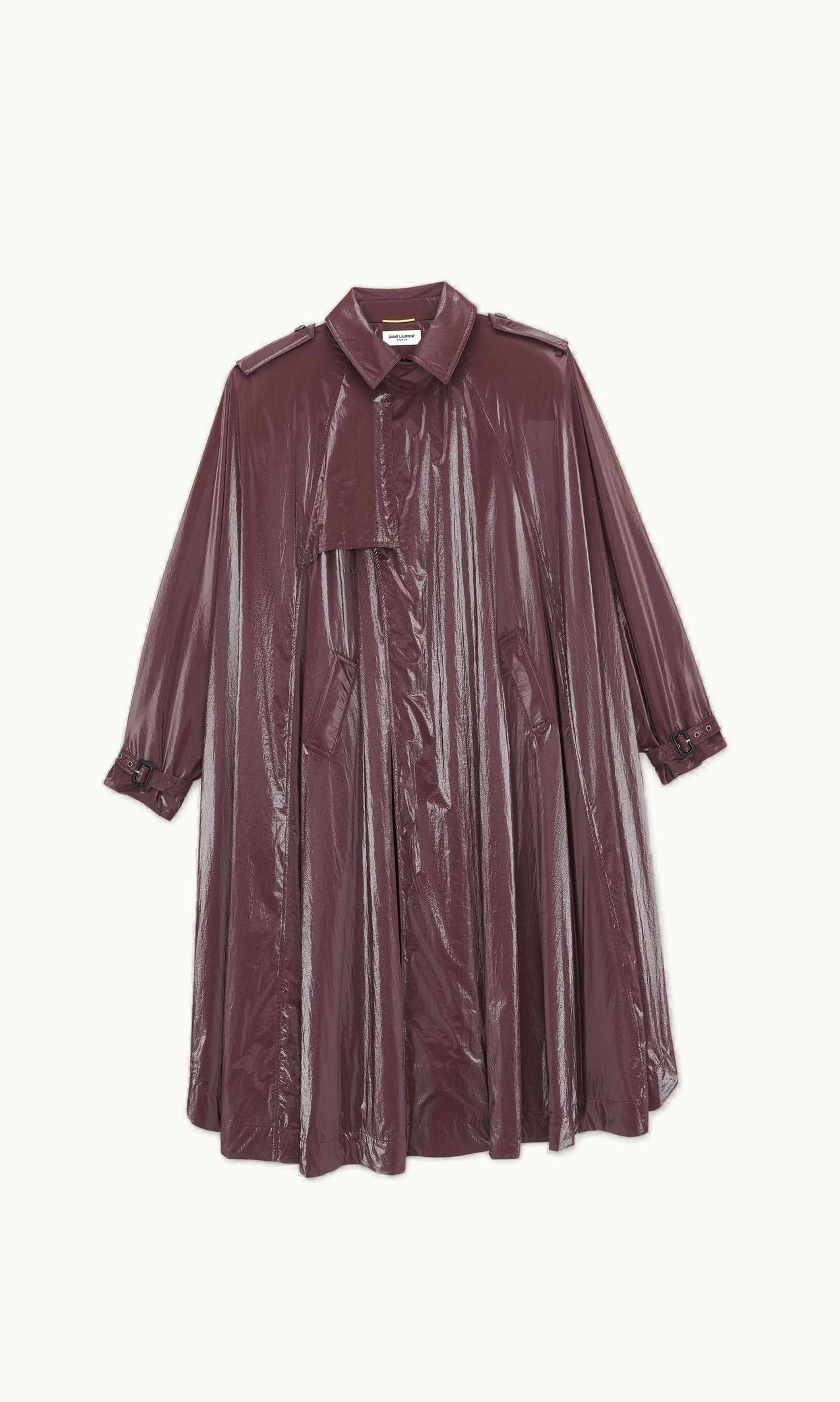 Saint Laurent Trench Cape In Nylon Aubergine | GLINT